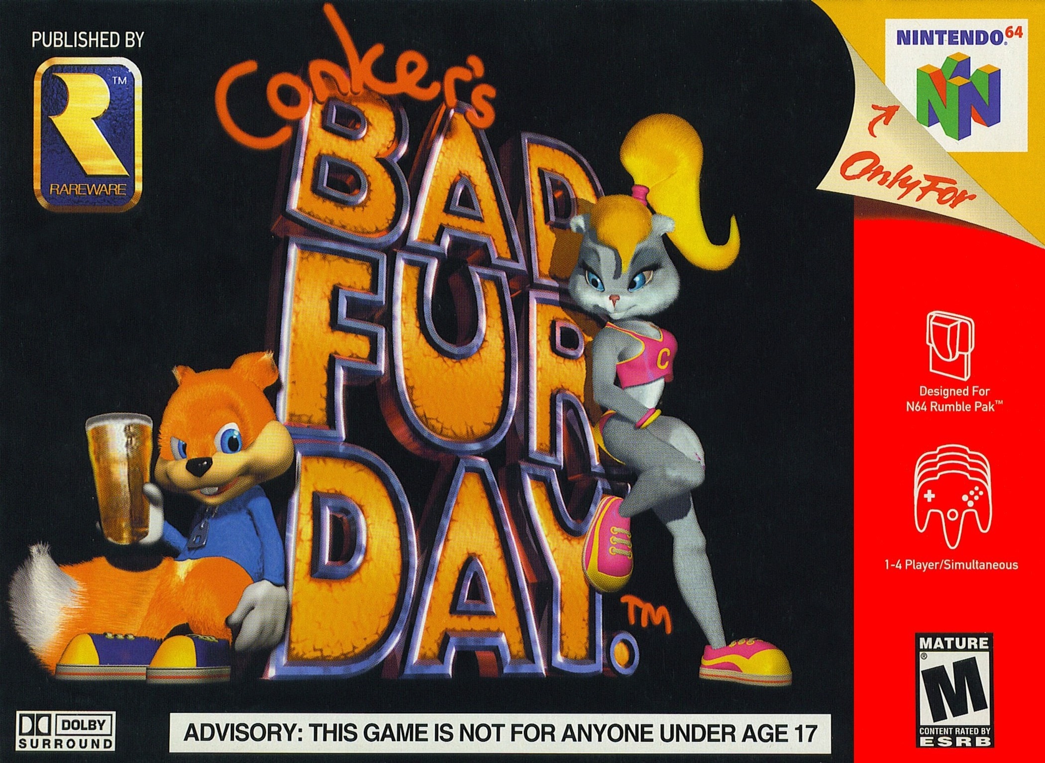 I don't know what was wrong with my dad, letting me rent this M Rated N64 game full of blood and gore, the story even starts with a drunken squirrel! You got to pee on things, they would swear.. I guess he didn't pay attention to the box. Because I used to play this when I was 5. I mean, what 5 year old kid wouldn't want to play the game with the squirrel on the box? Anyways, I've played it again nowadays and it's honestly so much fun. There are so many options for multiplayer, that it doesn't even matter how the story goes. I can just play the multiplayer with friends and have a blast! If you've never played it, I definitely recommend it!