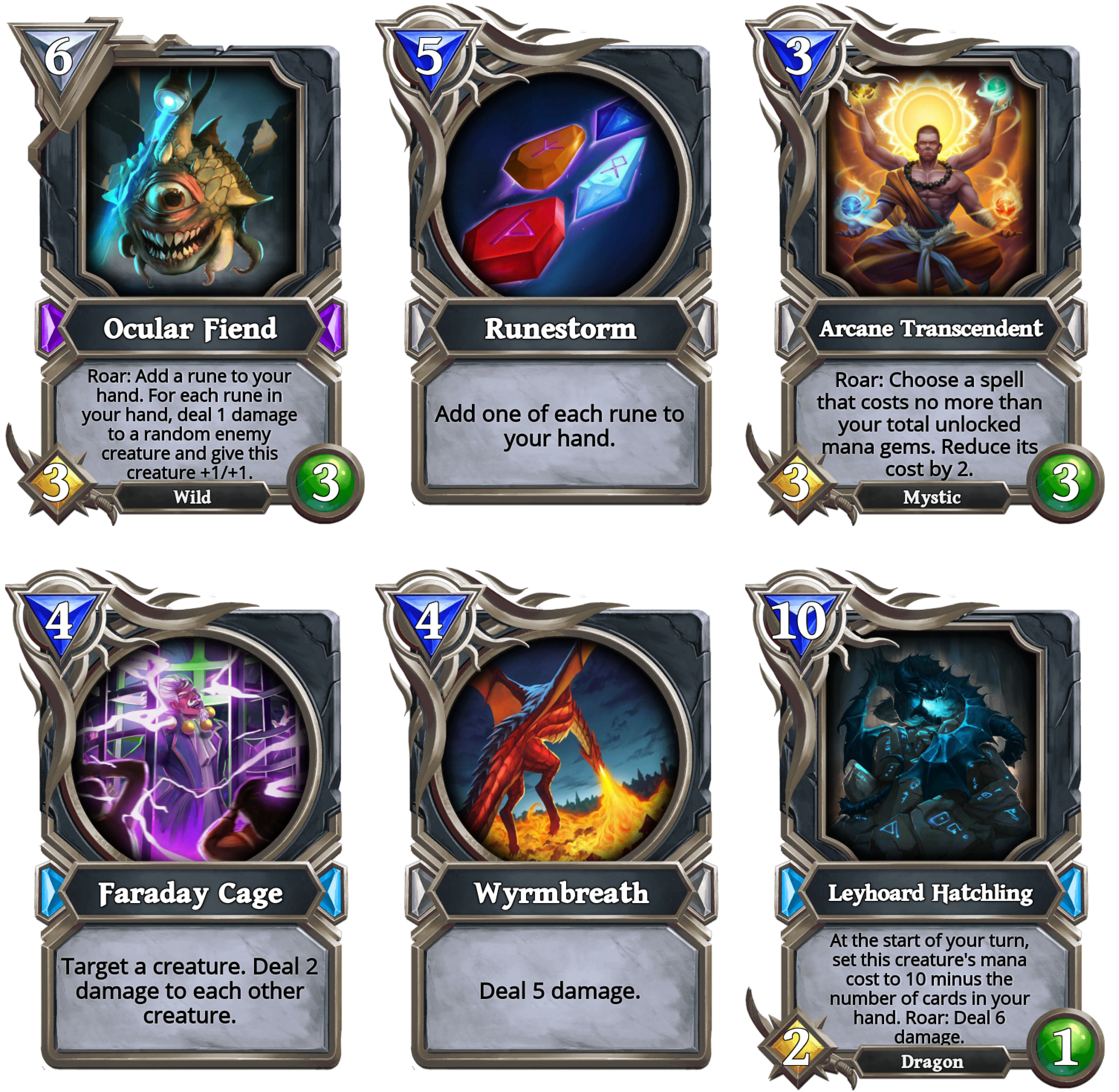 Leyhoard Hatchling, pretty much the same story as Wyrmbreath with an extra 2/1 body attached to it. In Rune archetype decks, you tend to have quite a number of cards in your hand so playing it for 5 mana or lower isn't too much to ask for.