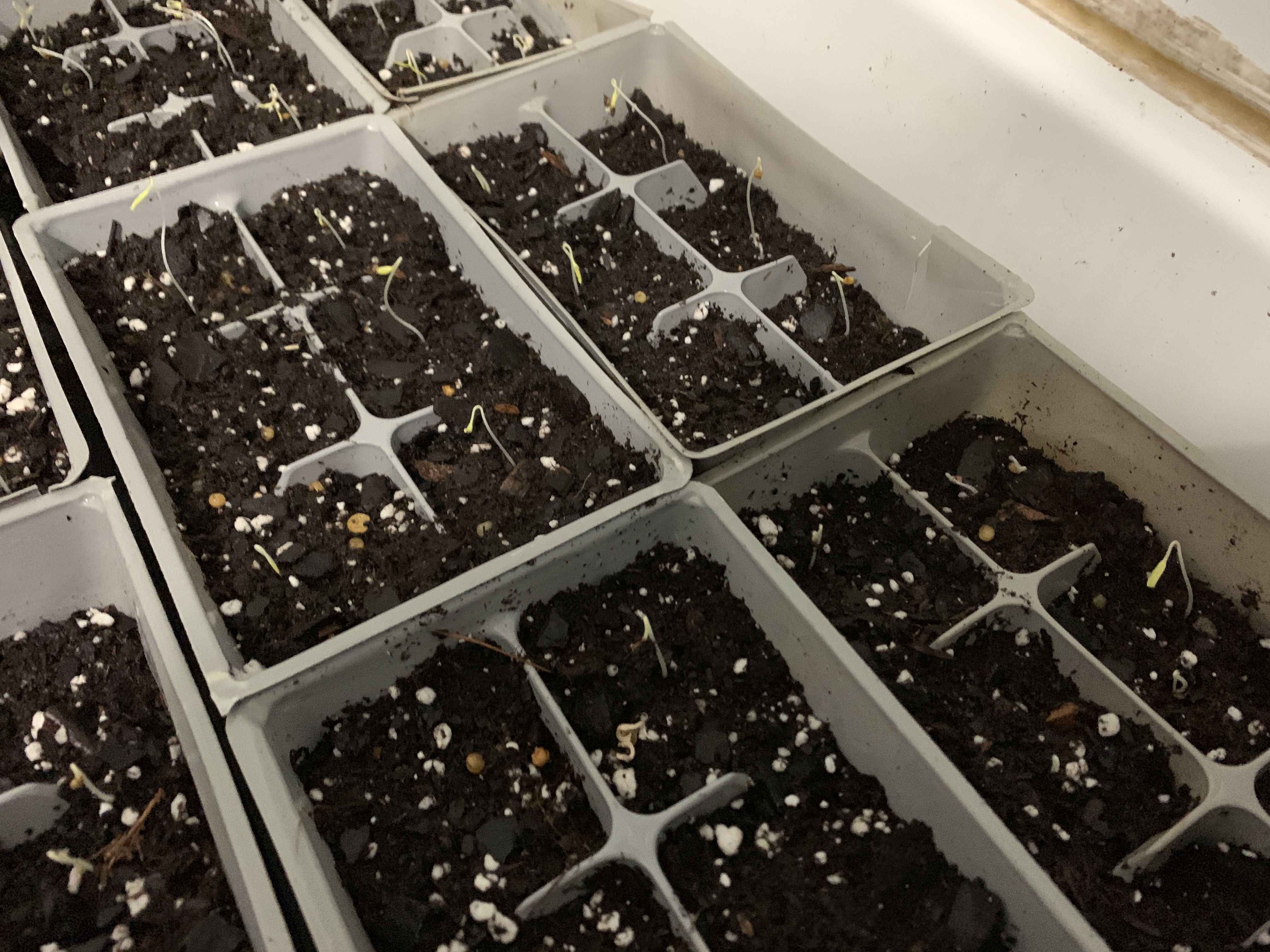 So I planted my seedlings on the 16th of February. Today is the 29th. I have photos from several days and will post them below. I seem to have had a good germination rate for sure.