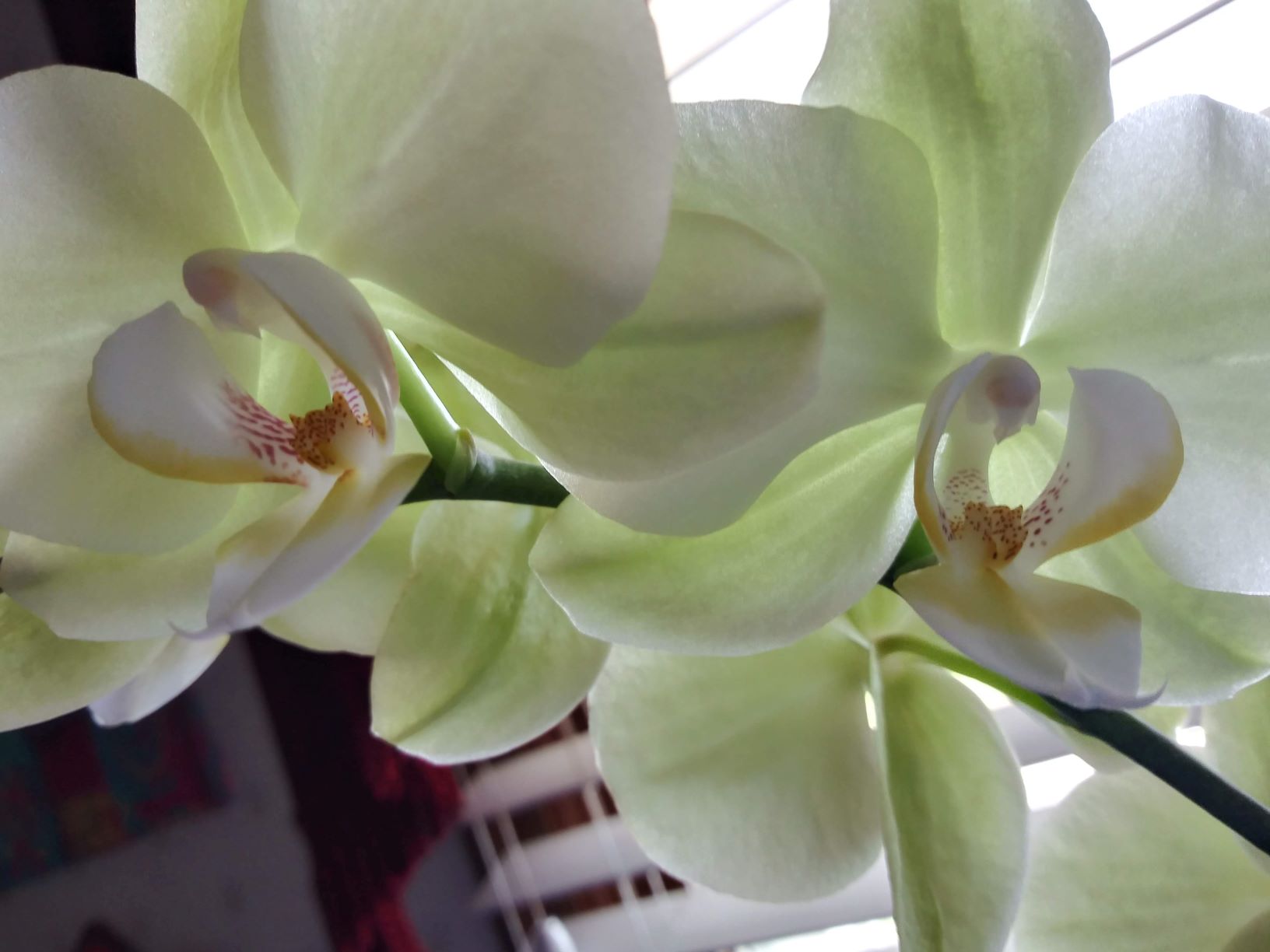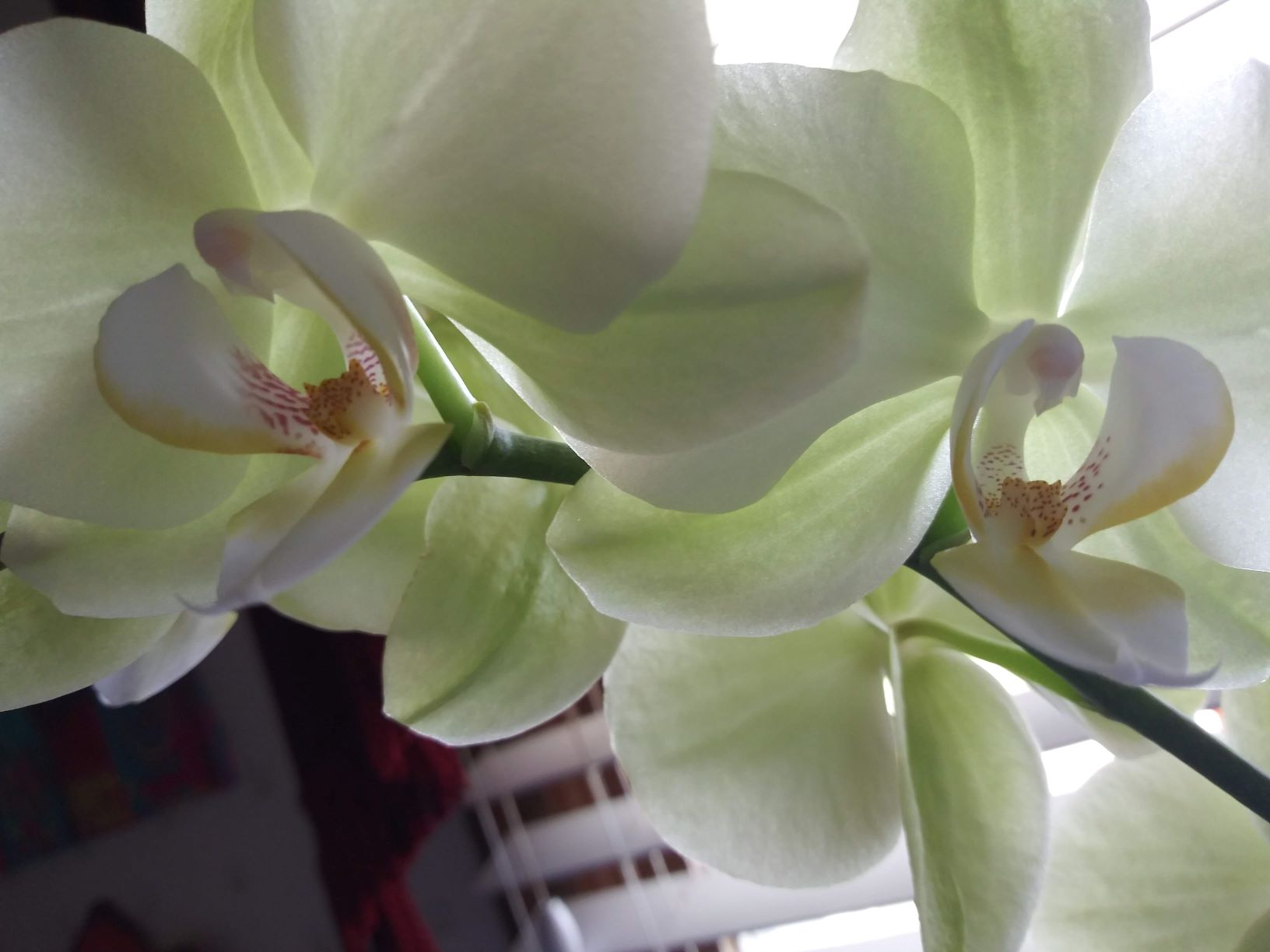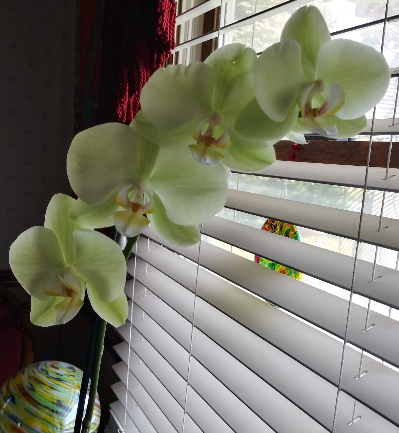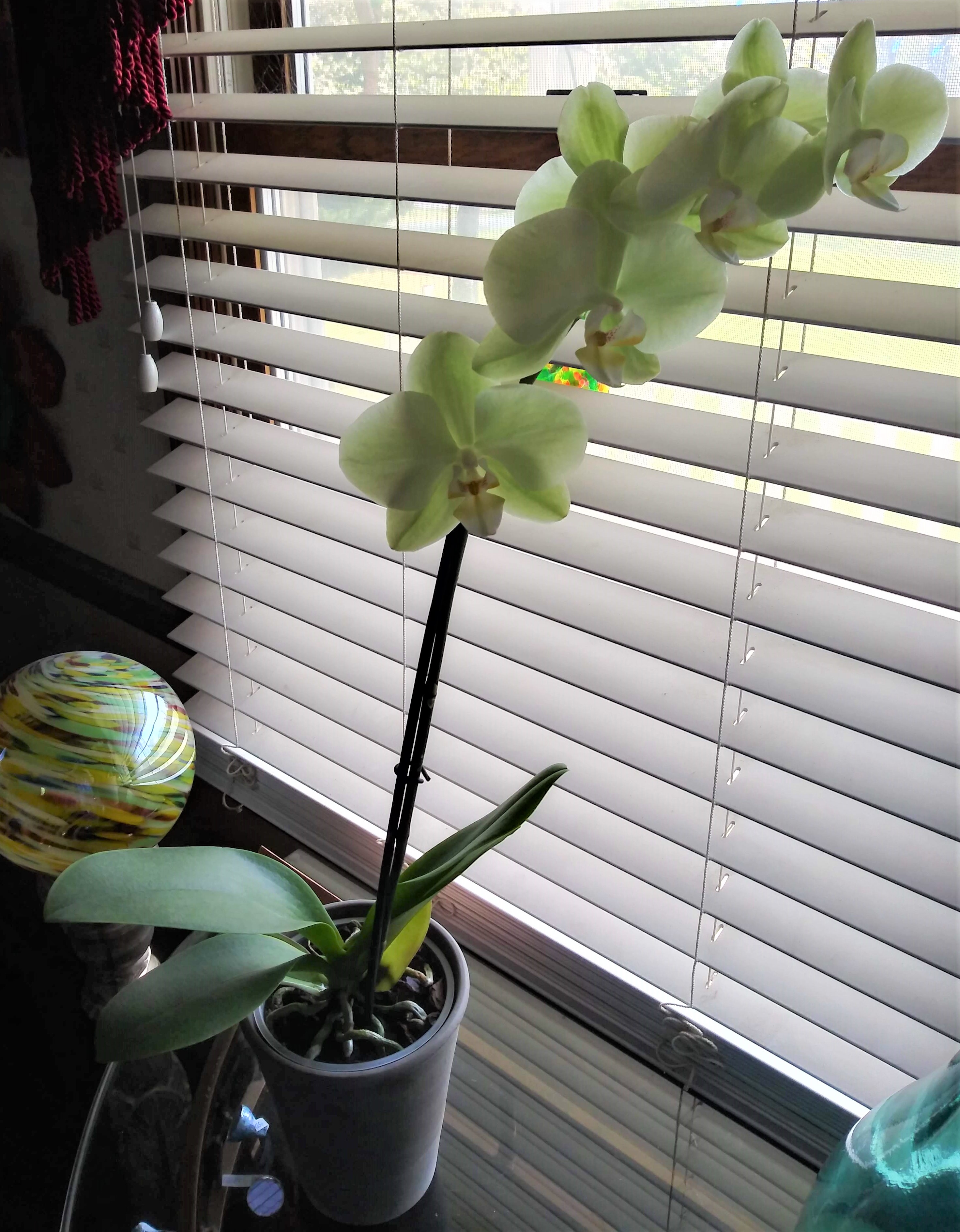 Congrats on your first orchid! It is lovely! One of my most favorite colors, I am mad about pale green roses.