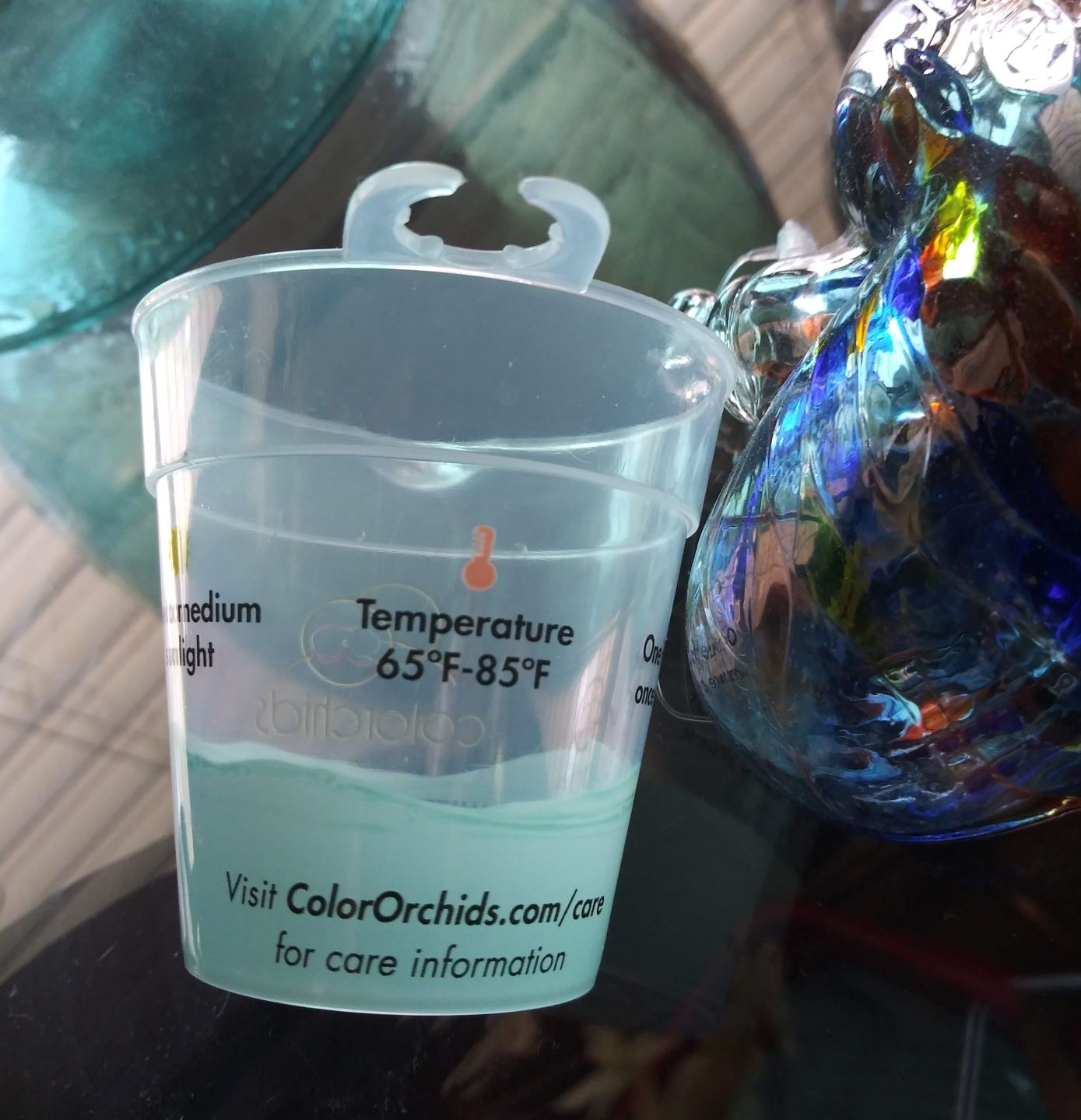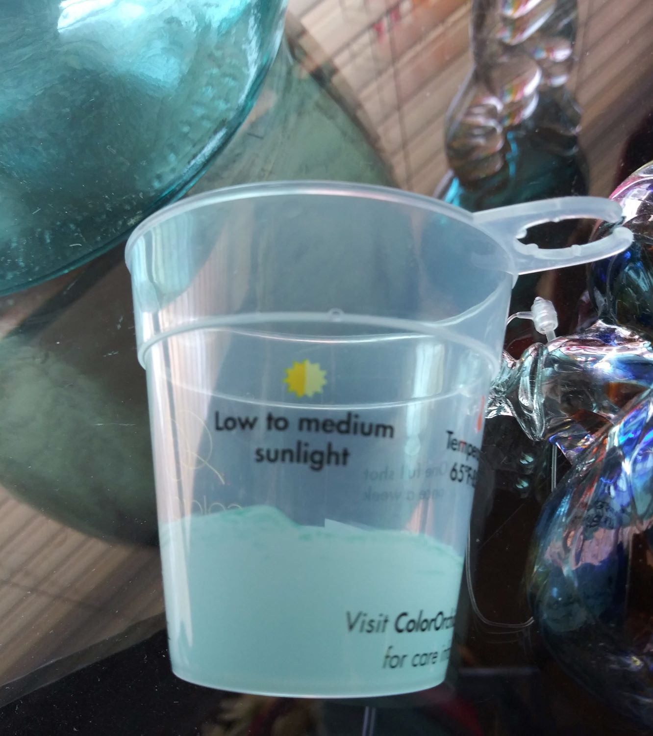 One reason I never bought one before was that I had heard that they were fussy and not easy to keep alive. Who needs THAT... right ? I had stopped and looked at them a few times as I went to shop, but the thing that finally convinced me to try was this cup that was attached to it.