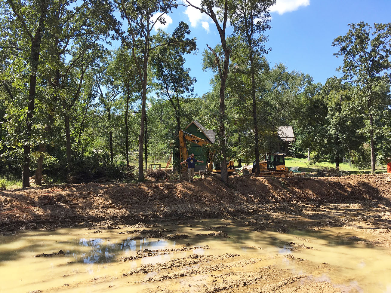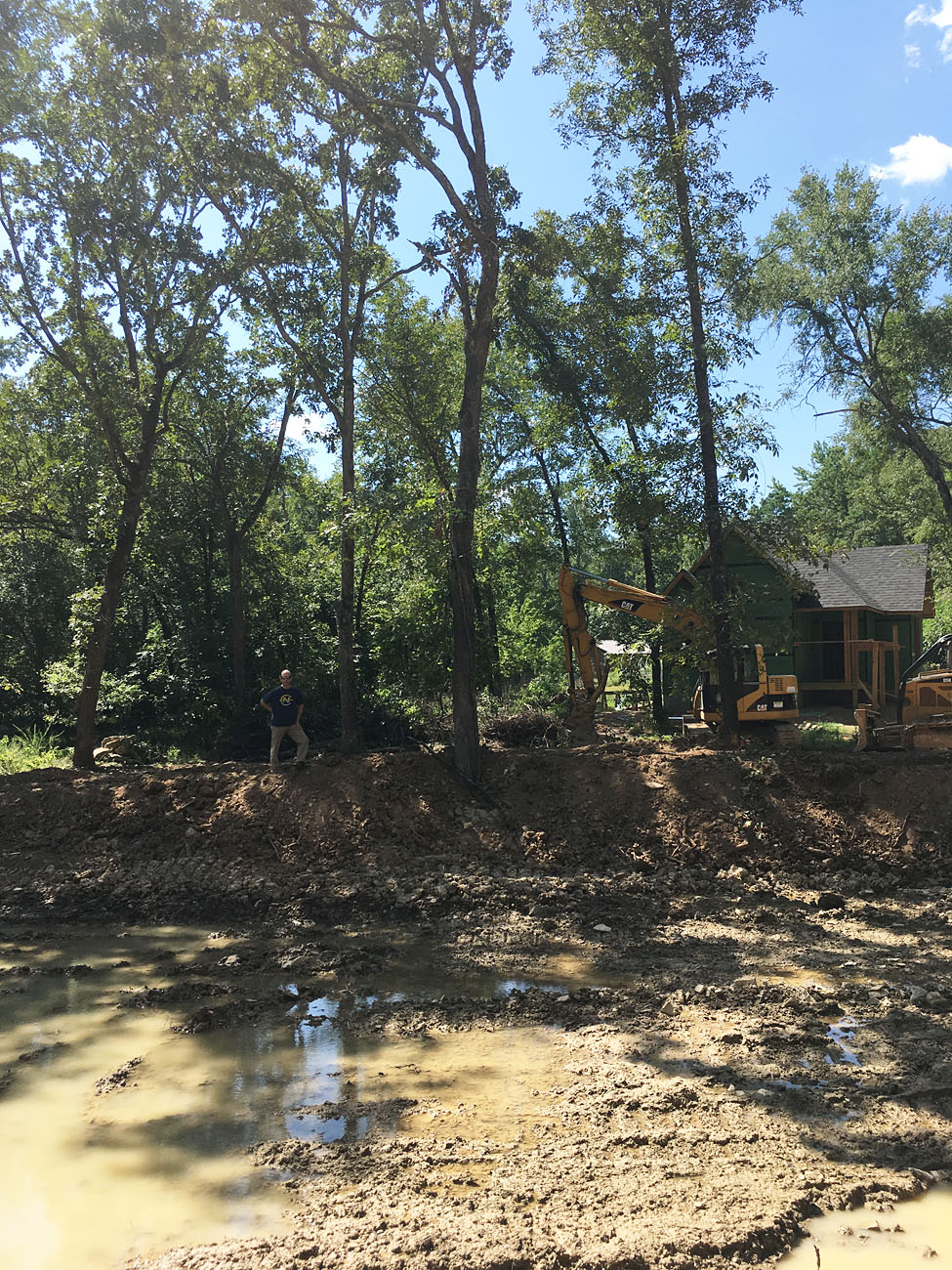 The pond guy showed up a few days ago with his machinery. After he pushed the dirt around for two days, there is now the shape of a pond in front of the cottage. It's like magic. The pond guy had to go out of town for a few days and during these few days, we noticed water coming into the pond daily. My husband marked the water level with a stick. He had to move the stick daily. several days went by and we had a good amount of water at the bottom of the pond. It had to be pumped out when the pond guy came back so dirt can dry. I am really excited about the pond taking shape. It looks better, larger, and deeper than I had imagined in my head. It makes the cottage look so small.