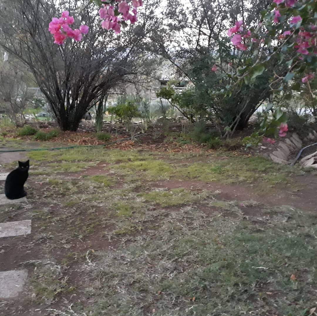 Cat appears to be enjoying watching you toil while enjoying some warmth in the sun, have a great day Fiona.
