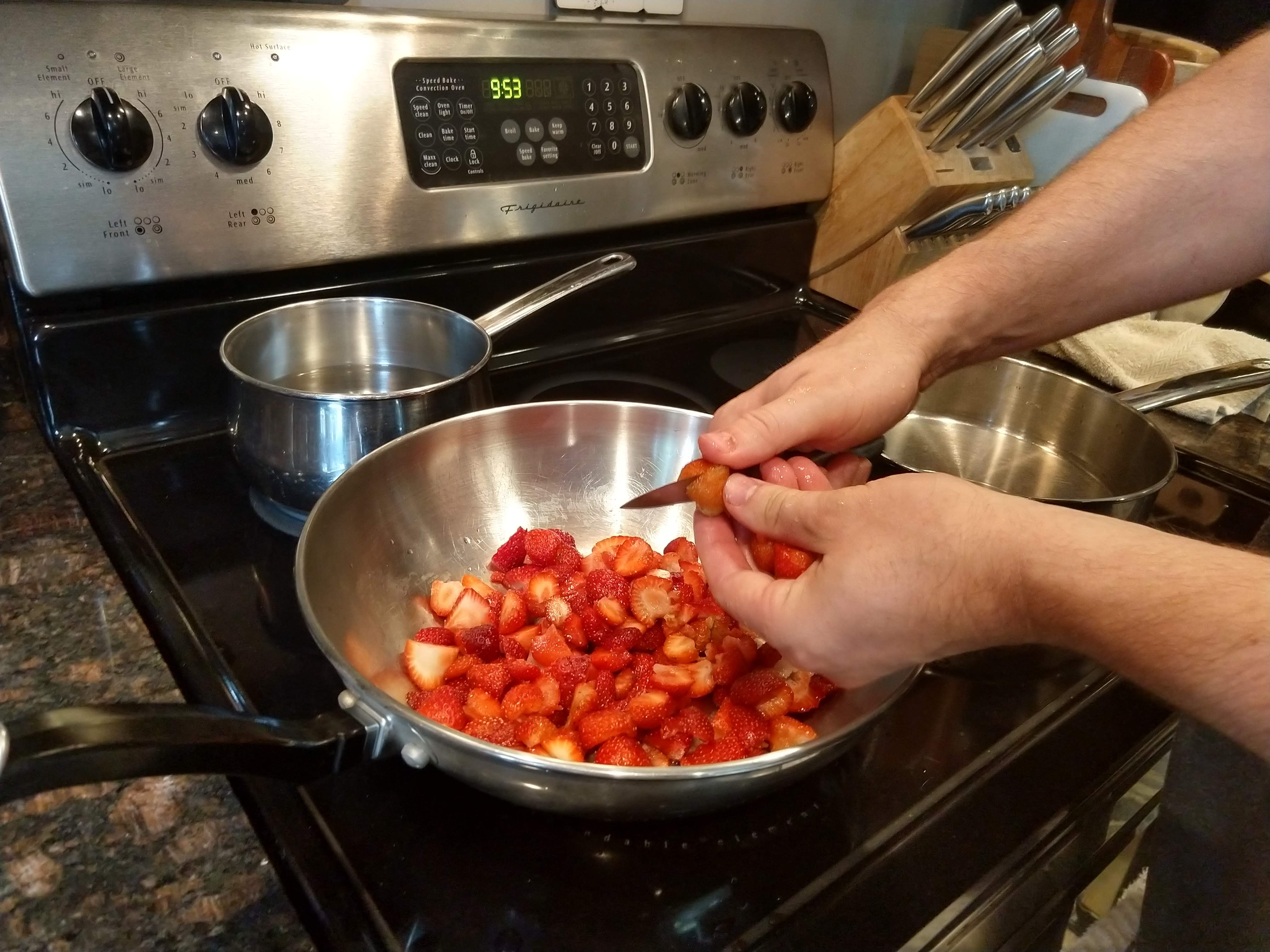 Add your sugar so it can start to extract the juice from the berries. I had about 21 oz. of berries and planned to use a cup of sugar. I accidentally added about 1 1/3 cups , but everything still tasted great. Just a bit more sugar than I planned on.