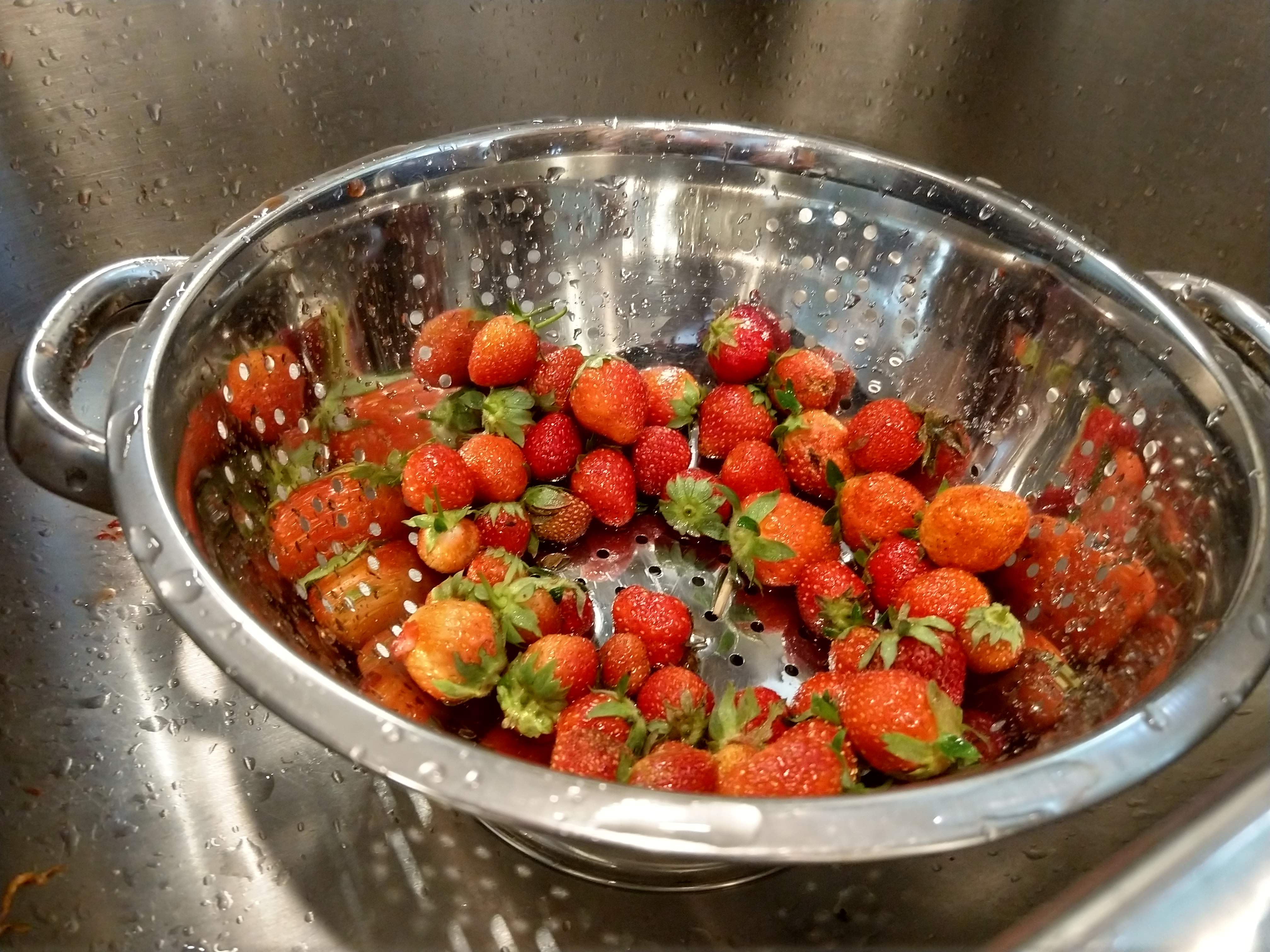 Speaking of gardening, my garden is in full swing and strawberries have been coming in daily. Here's a pic of yesterday and today's harvest.