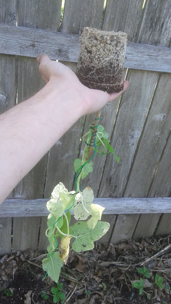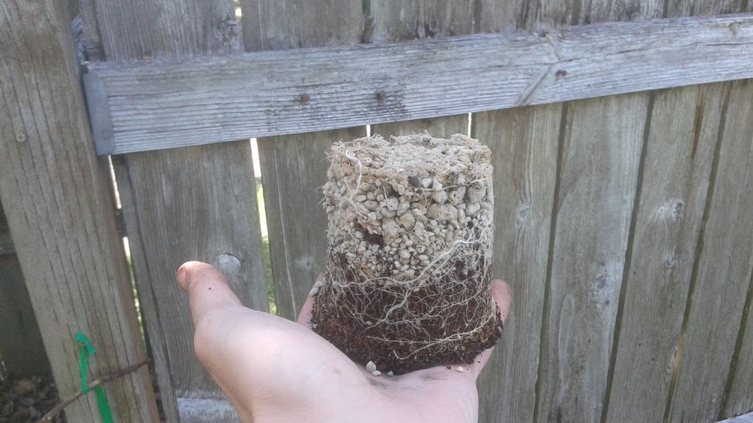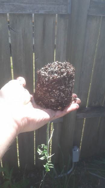 This is the pepper that was blooming. Checking out the root system.