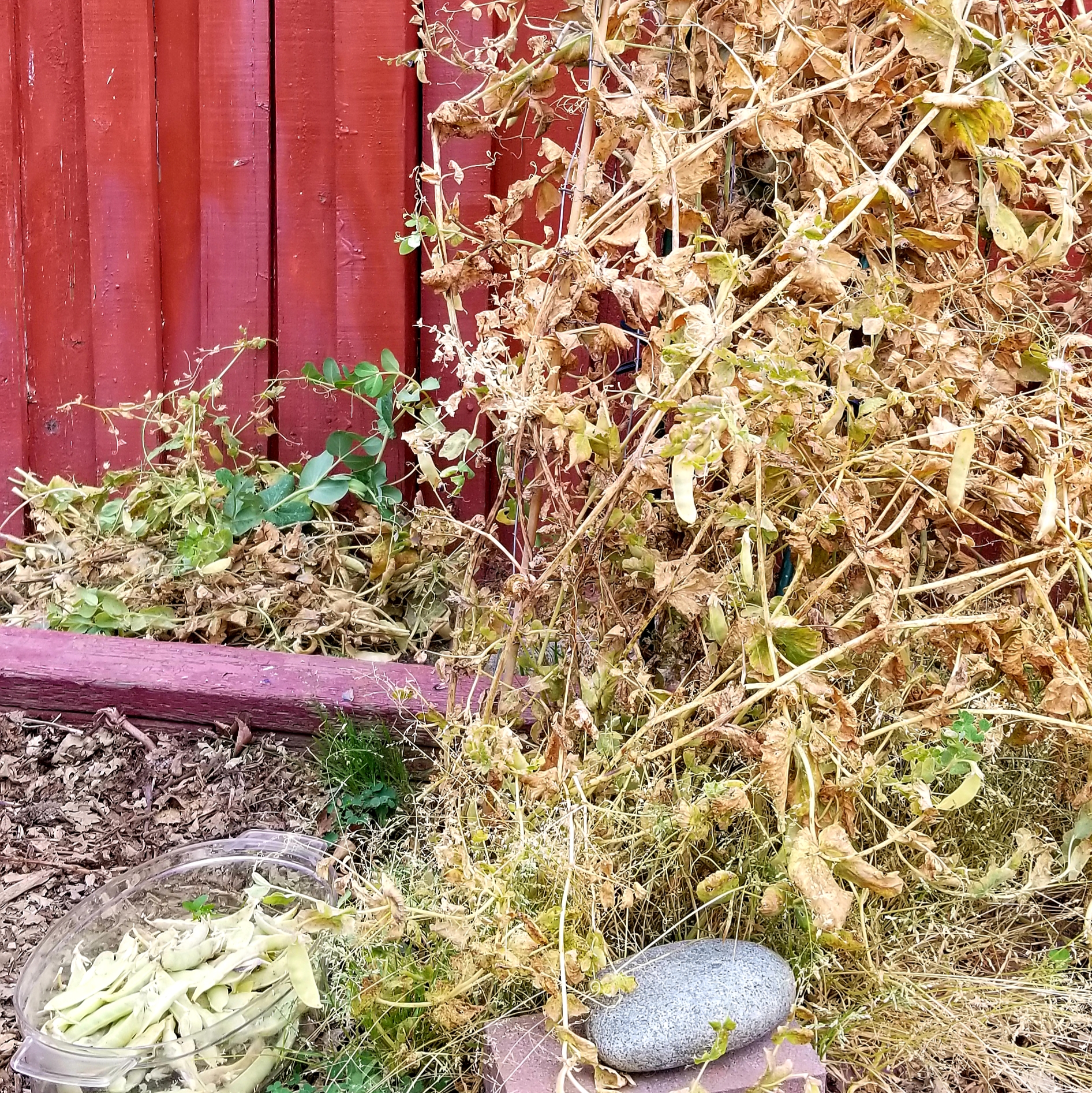 Finished up prepping the back flat garden beds and cleared out the snap peas from the back winter bed.