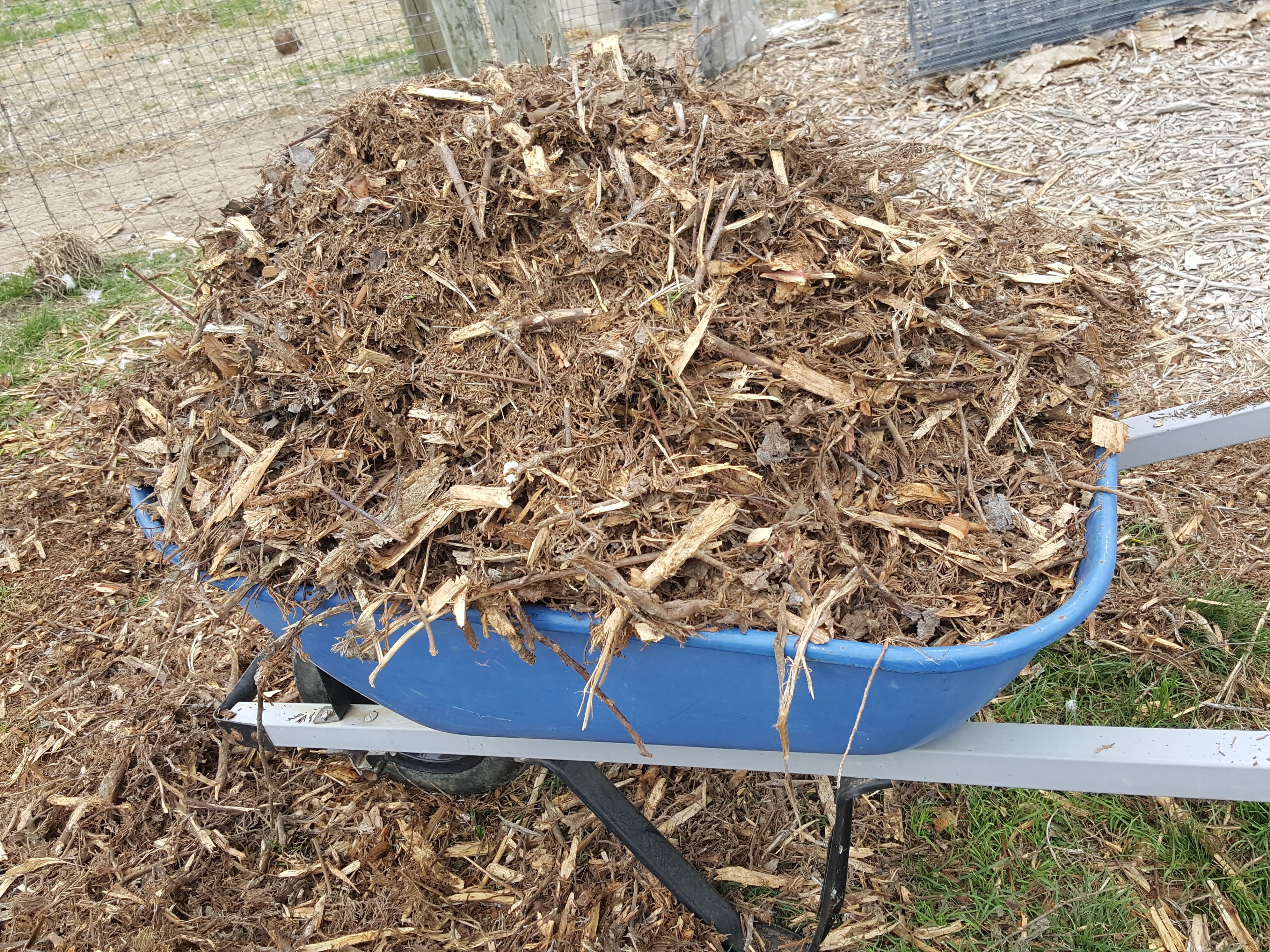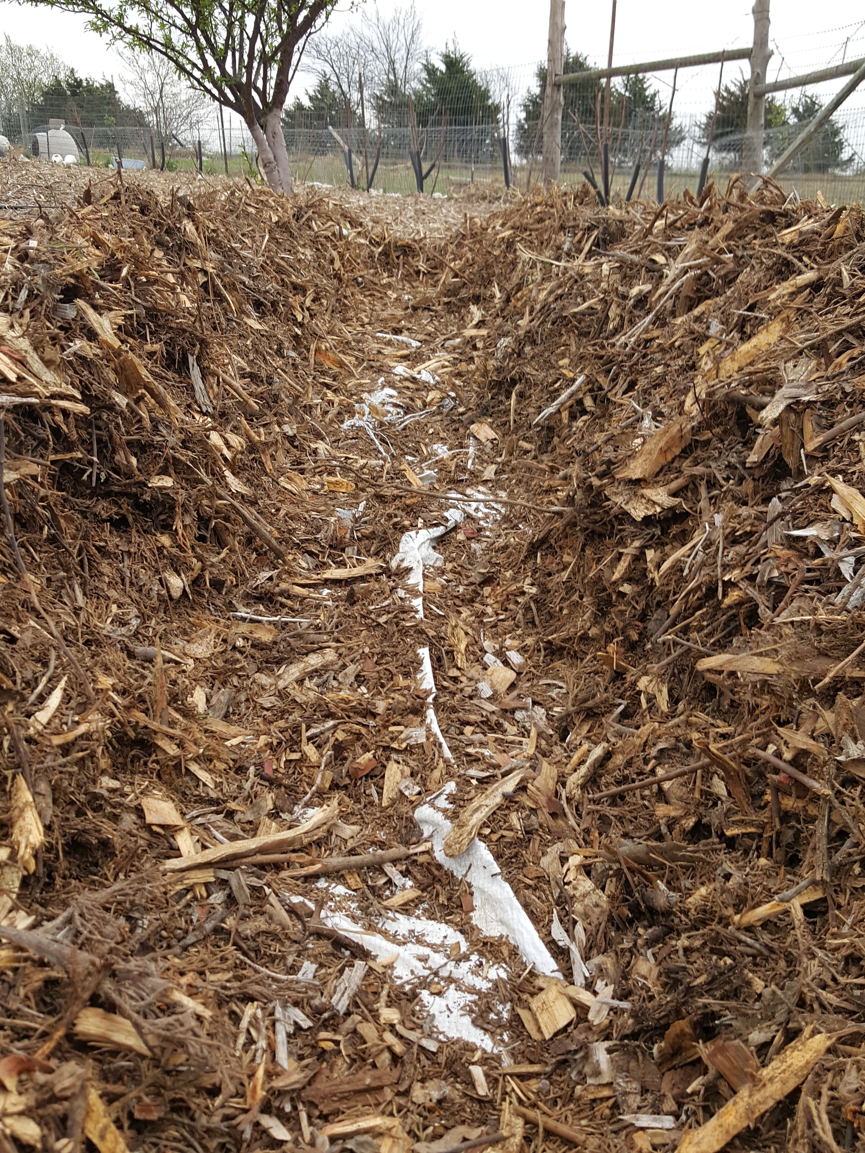 Get ready to load up those wheel barrels. Lots and Lots of mulch.. Im sure hay bales, leaves, or other materials could be substituted for mulch, use what ya got! Make a row where you'd like to plant your seedlings.