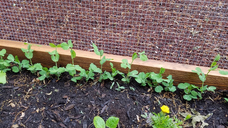The peas I planted along the outside edges are doing great and they will climb up the fencing nicely.