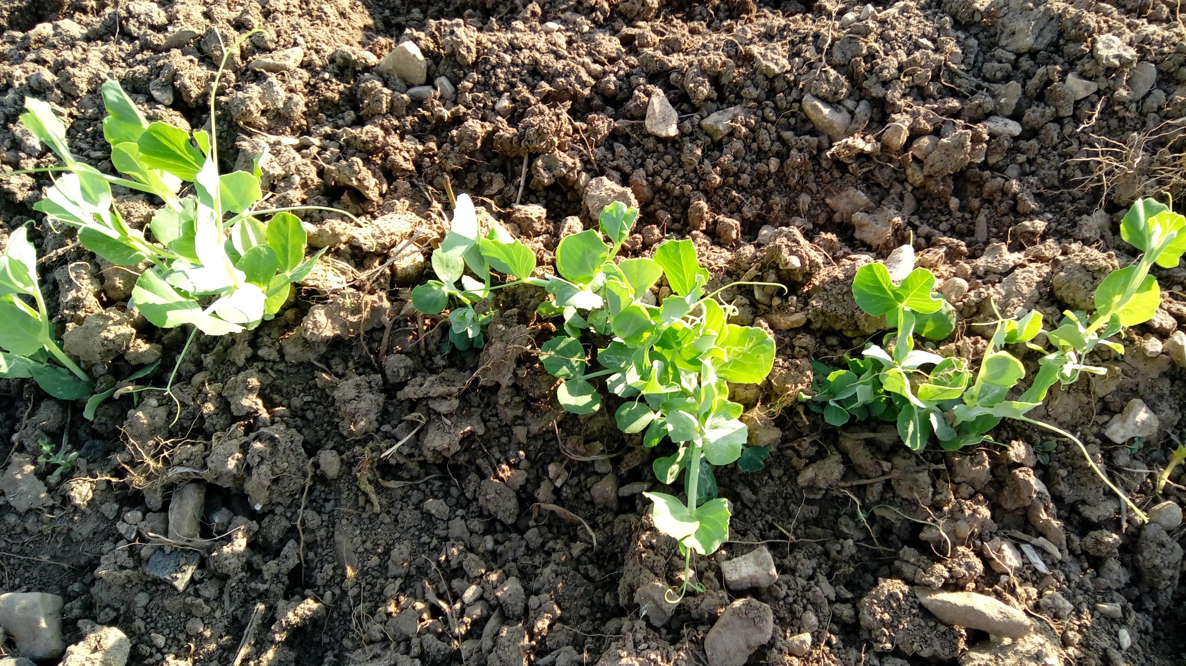 So. In the beginning in this year I heard that we can saw pea in fall, but I hear this in winter, so I go to the field in the end of January and put some pea in the soil. Few days later start snowing and snow was there a few months. But all the time if there was no snow I take some picture and look how growing. I put some seed in the soil in the spring too, but in the end I see that winter one is the best choice, because there are the most of product on them. So this fall put some peas in the soil too. And here is some instructions and photos how to grow up your own peas.