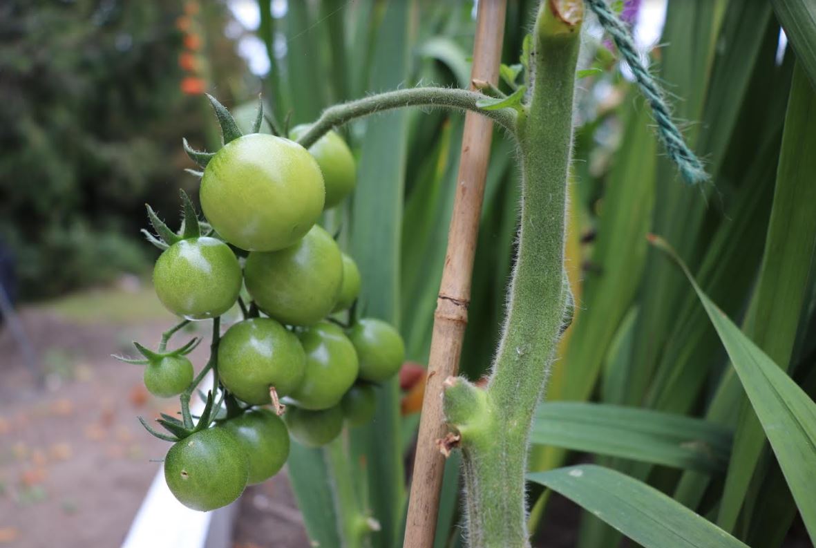 I planted about 30-40 tomato plants, thinking that only a few would survive. To my surprise, they ALL survived so now I have a ridiculous amount of tomato plants that I have had to sneak into almost every garden box. I snuck two Garden Delight tomato plants into the back of this planter, and I’ve got quite a few growing! They should be starting to fully ripen in the next few weeks.