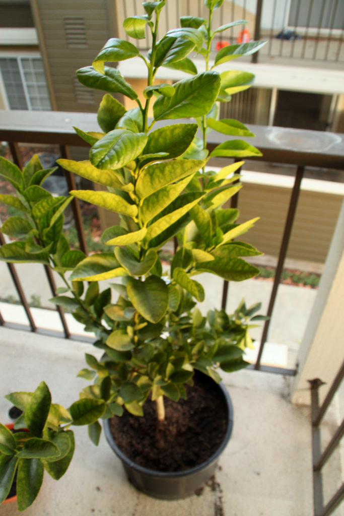 My lime tree came from a nursery in a pot, looking about like this. After planting it in the soil, I watered and fertilized it well for over two years. And two years later, the plant looked exactly the same. It had not grown as much at all.