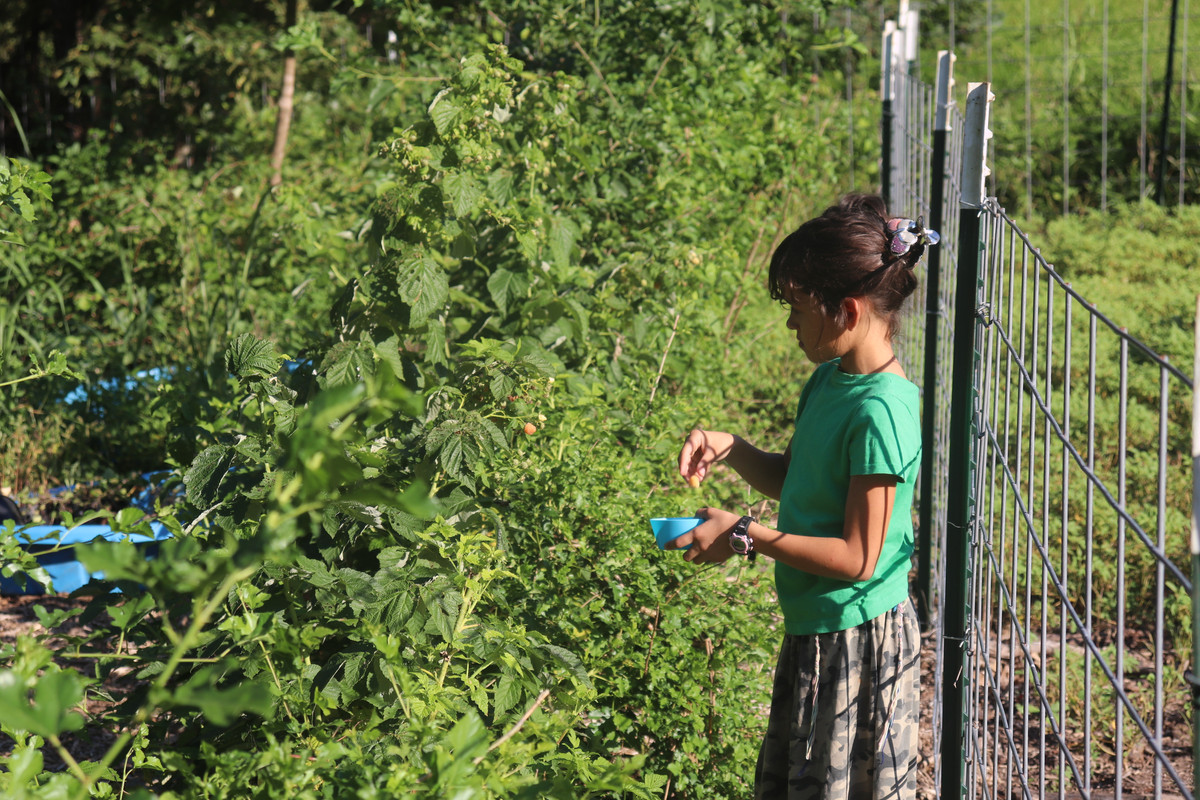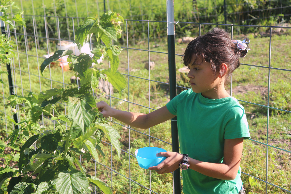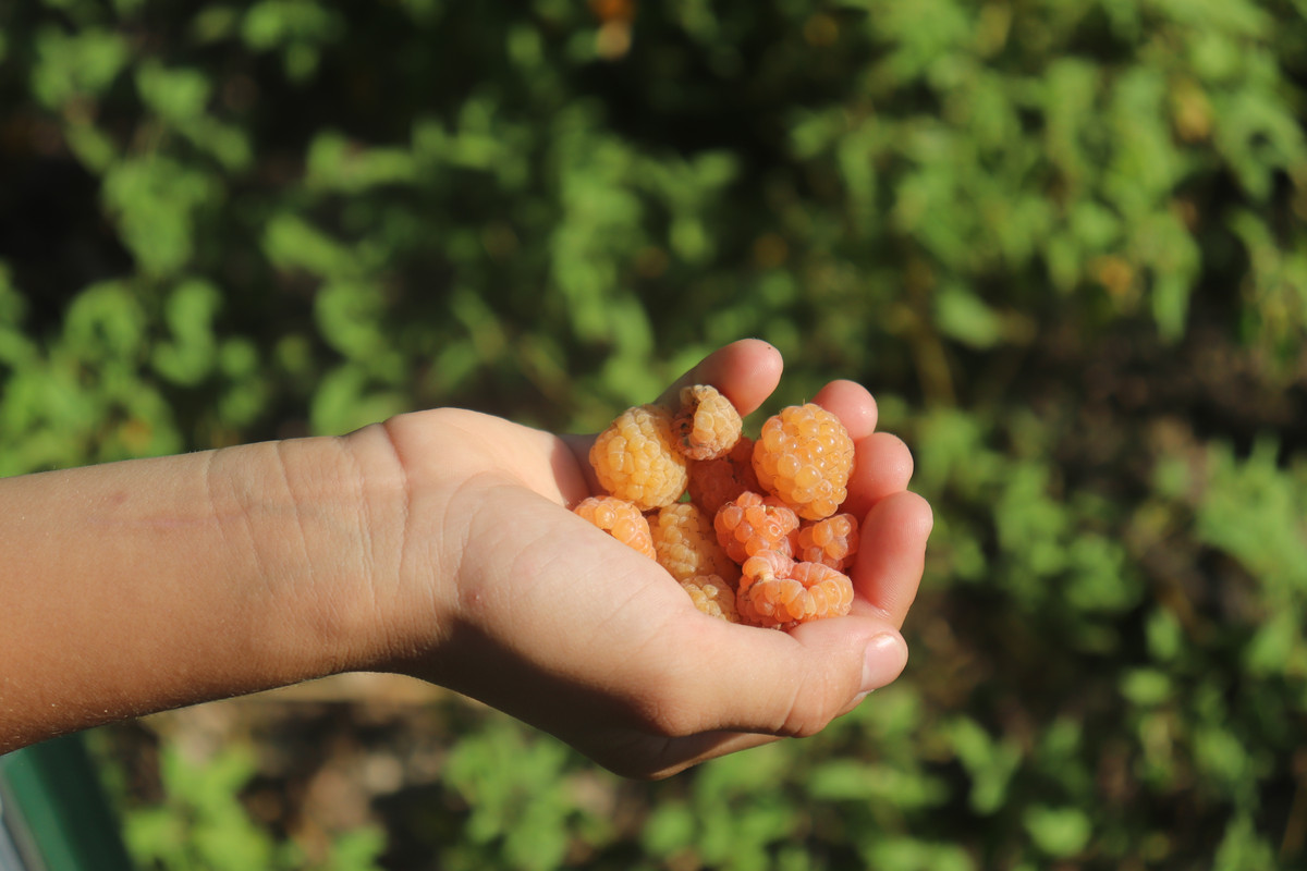 If I recall correctly, we got these Golden Raspberry plants from @shalomacres last year. Within months they were producing last year, and this year they are back once again, bringing the harvest. With only a handful of plants, we don't get that heavy of a harvest, so they provide an almost daily snack-treat instead. Usually, one of the Little-Peppers remember to ask each day, and they pick what they can and then share the harvest. Here are a few photos of a recent harvest that Red-Pepper picked to share with us.