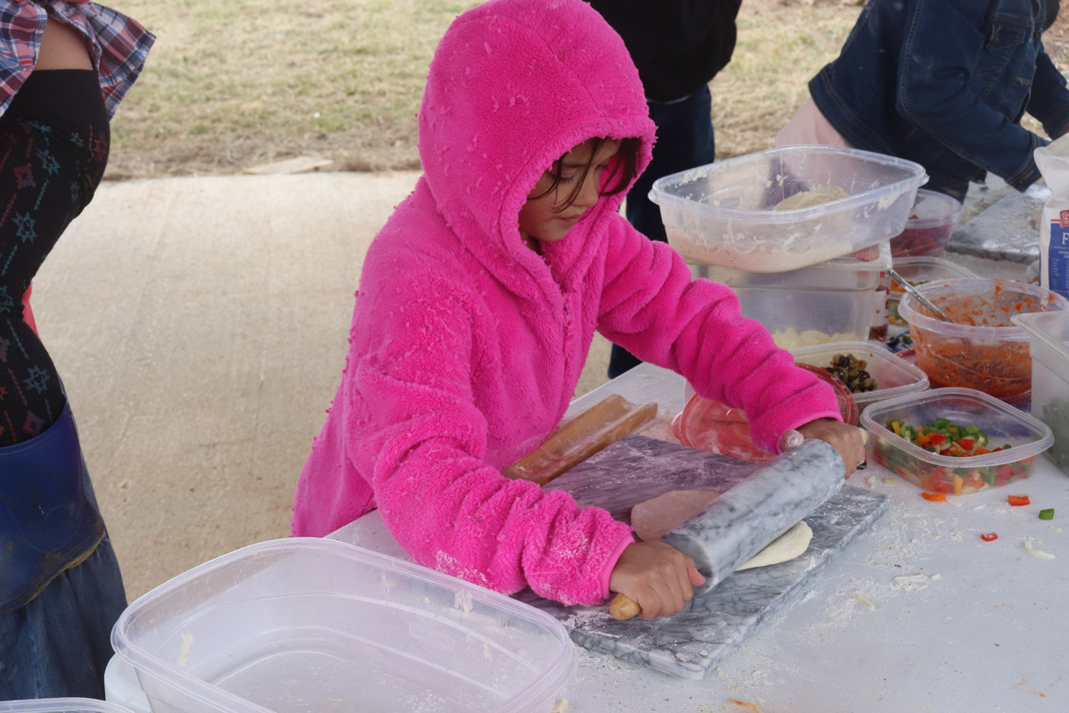 Always willing to help and also to learn, a couple of the older Little-Peppers got involved in the process and helped out where they could. Here "Red-Pepper" rolls out some dough. They simply waited for a new order to come in and made whatever pizza they needed next.