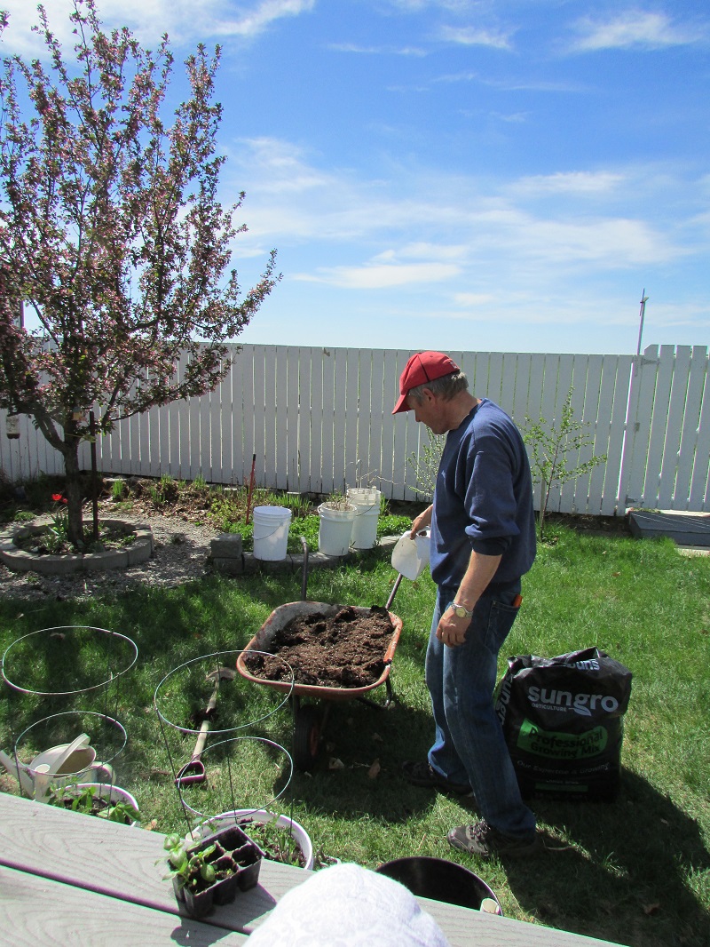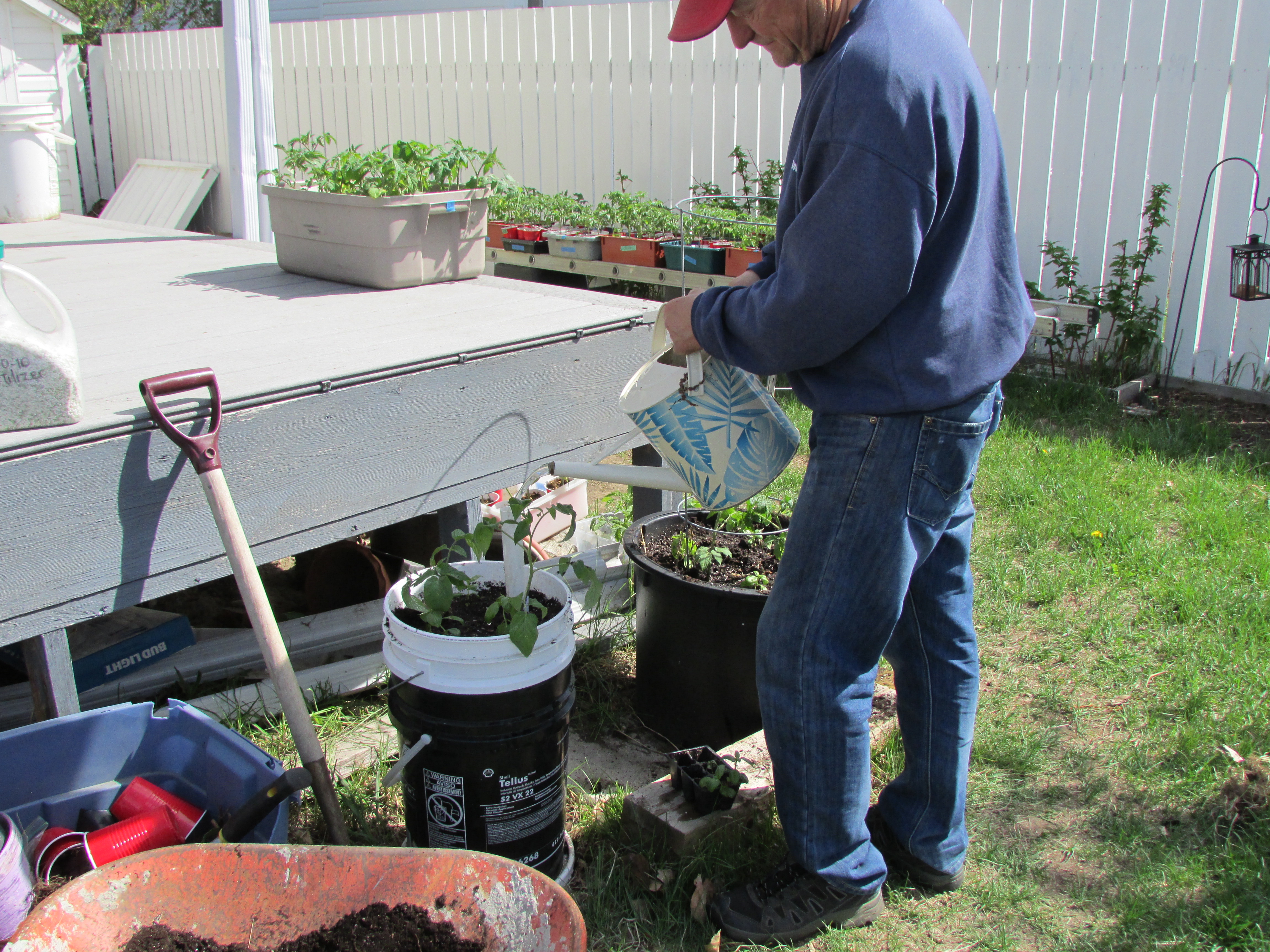 Fill the containers with fresh promix soil and compost , my formula is always half and half. After you fill and prime you bucket you are ready to plant .