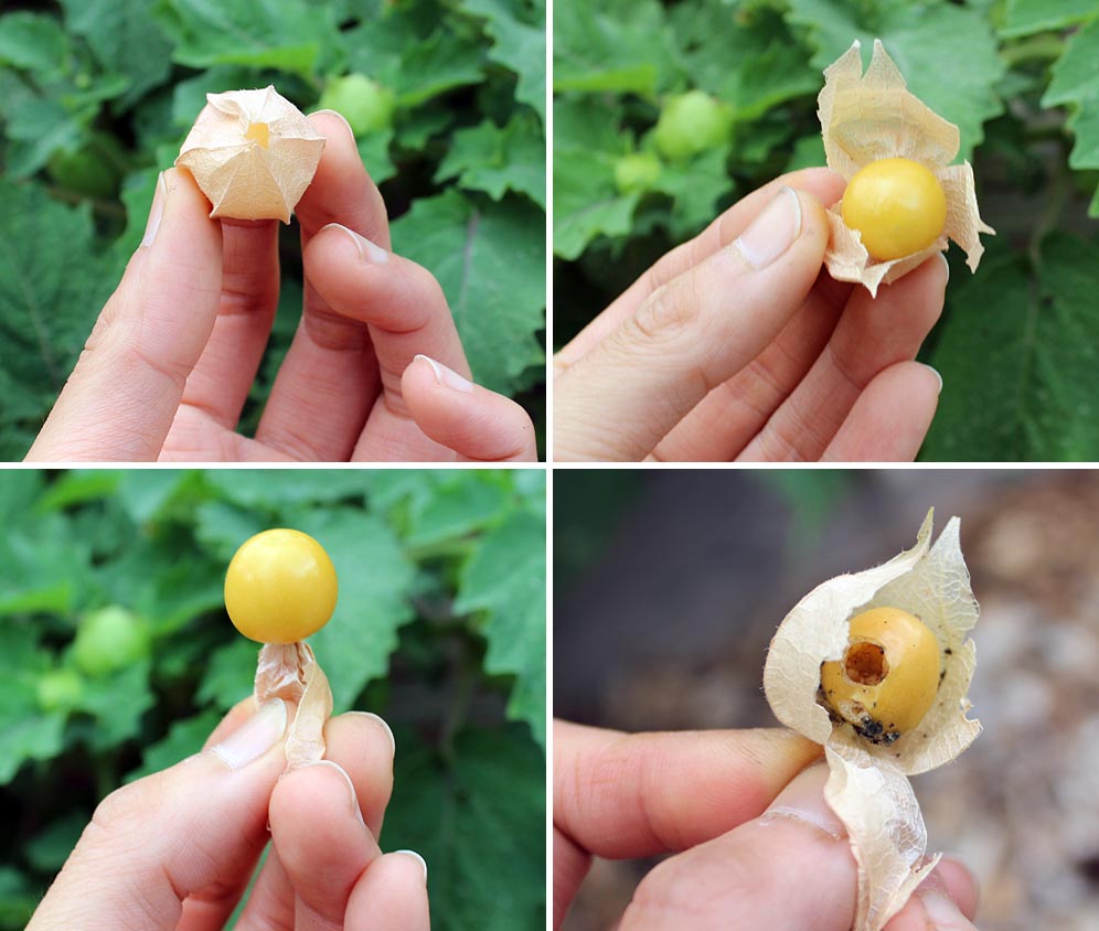 Keep in mind that ground cherry is part of the nightshade family. Do not eat ground cherries unless they have fully turned yellow. Unripened fruit (green in color) can have toxins that can make you sick. Ground cherries will continue to ripen even after harvest. Ground cherries have a long shelf life, usually lasting several weeks.
