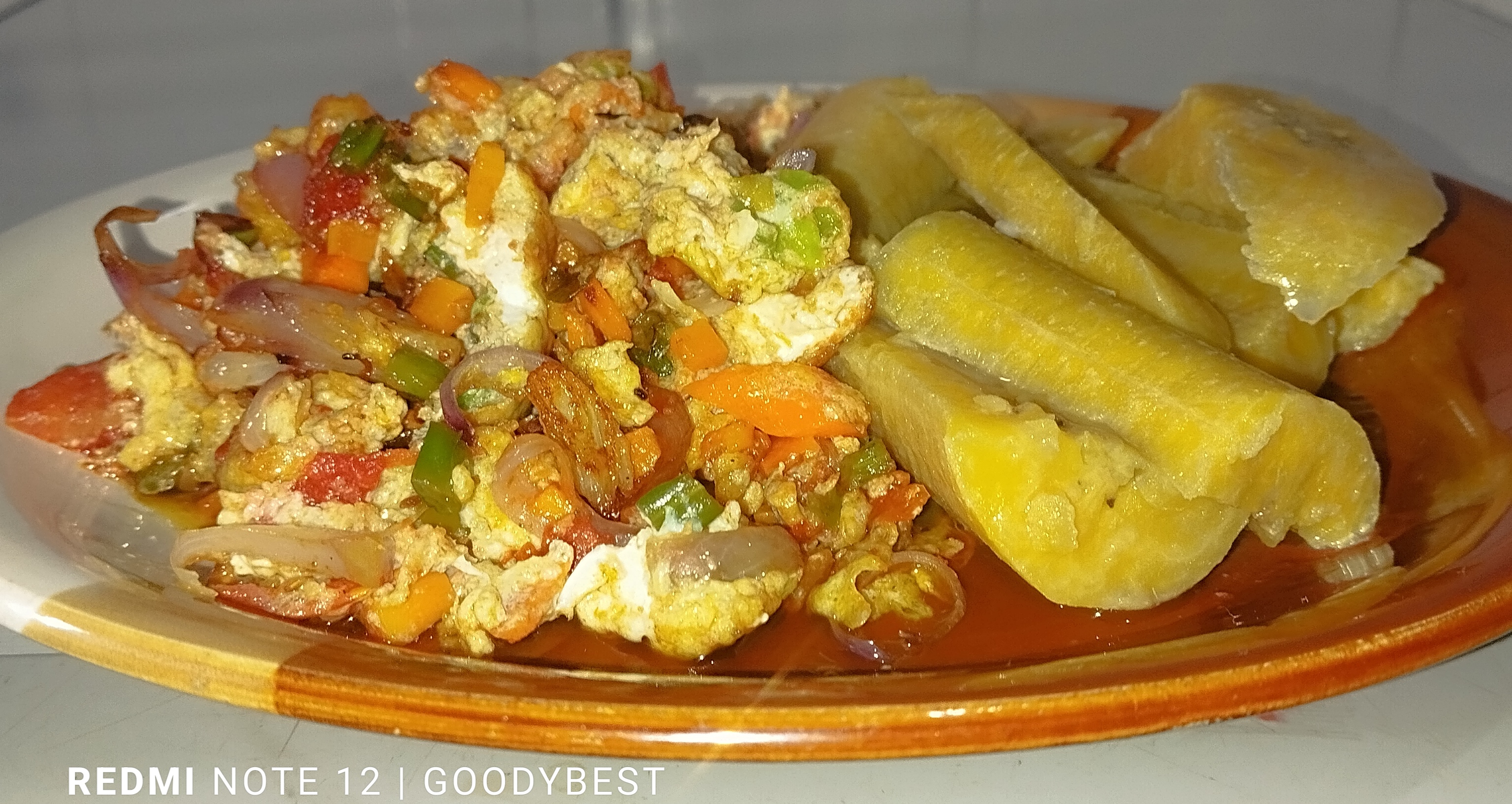 I would love Egg sauce with ripe plantain for a starter, and mixed fruits of watermelon 🍉 and cucumber will Go well for dessert!