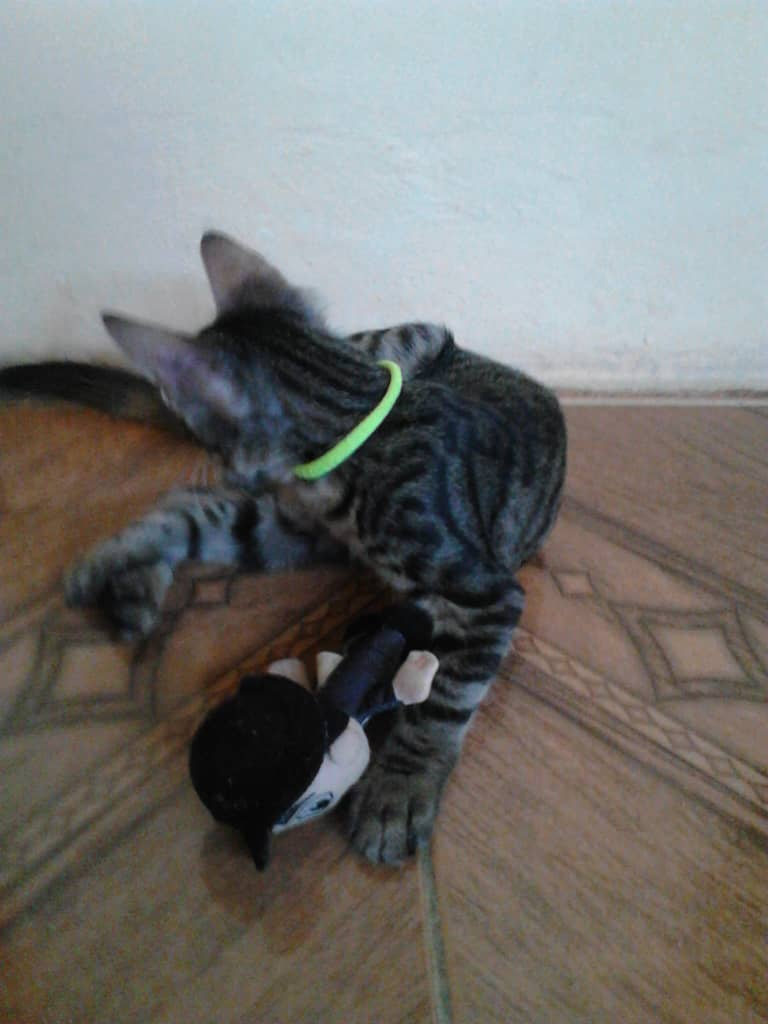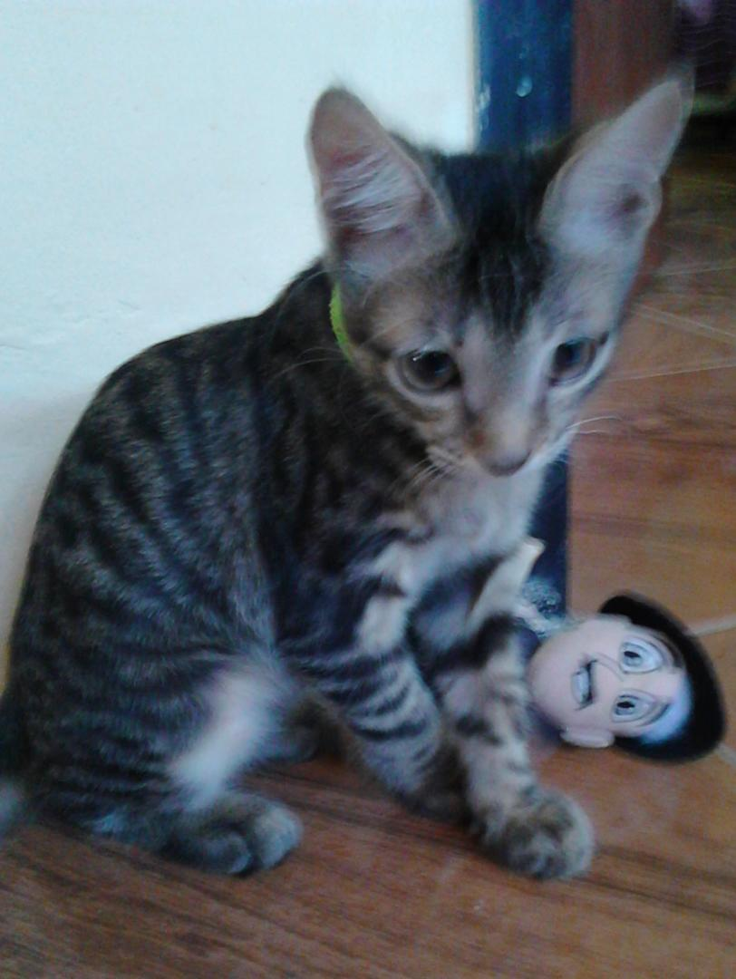 Hoy les mostrare a mi tigrito jugando con su peluche. Aqui unas fotografias tomadas con mi teléfono orinoquia de el jugando.