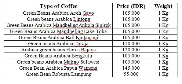 Therefore, Below we will explain the price of coffee beans per kg for various types of coffee produced by Indonesia today.