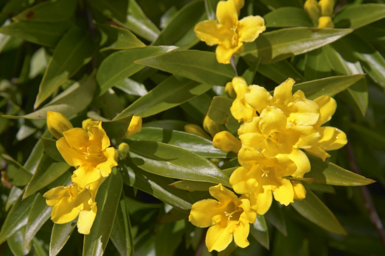 Jessamine is an evergreen vine that climbs trees, fences, and latticework all over our state. It blooms in very late winter or early spring, offering the first hope of warm weather to come! This flower loves sun and can grow quite fast given plenty of space and moist, well-drained soil.