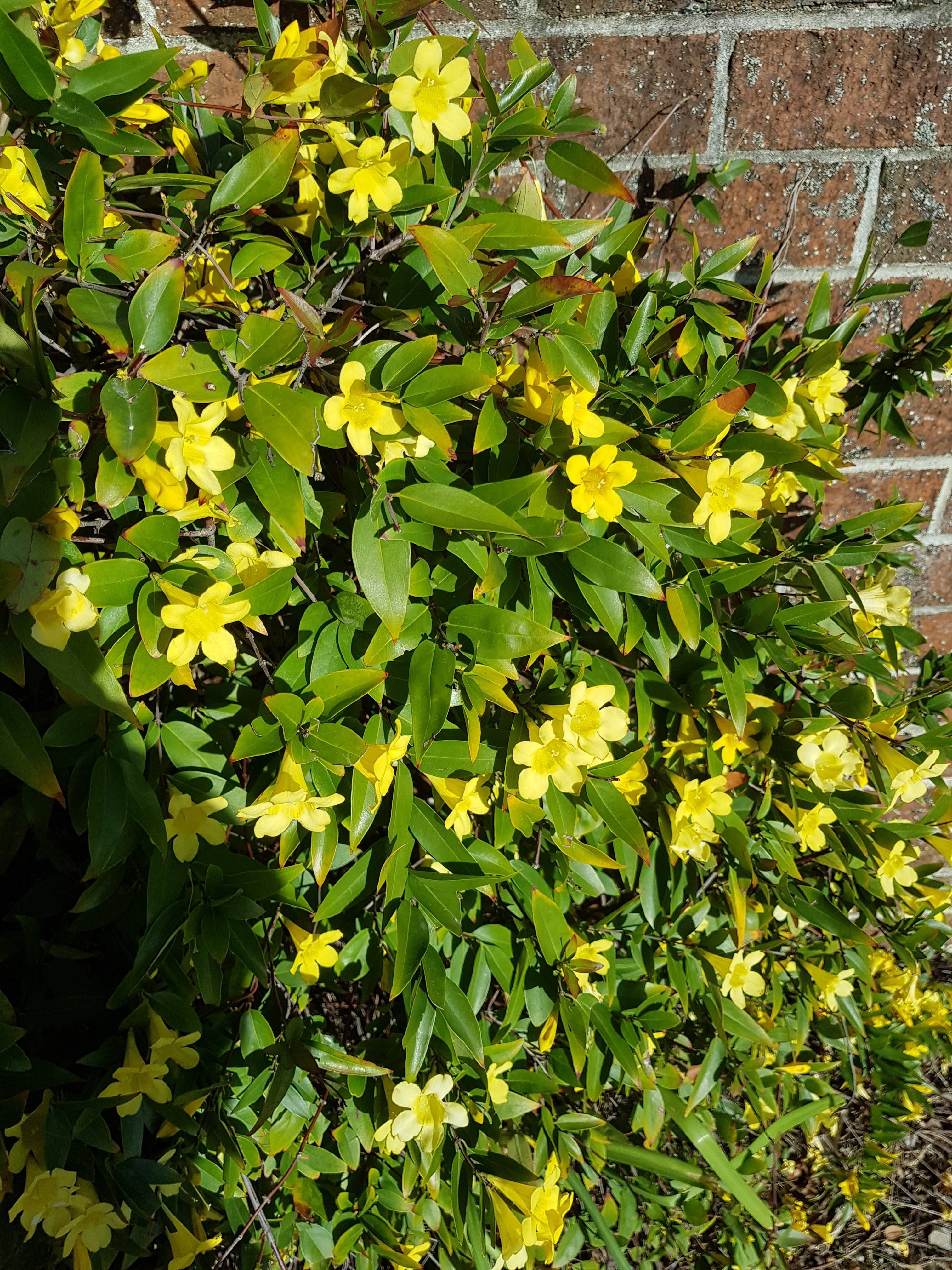 Gelsemium sempervirens is the Botanical name for the Yellow Jessamine. This is an attractive climbing plant with a twining habit which means the stems twine around objects so the plant can reach higher. It is an evergreen best suited for temperate and warmer climates, and has masses of small yellow flowers in Spring, which look great against the glossy deep green leaves, and the flowers have a lovely fragrance. Yellow Jessamine is also the state flower of South Carolina in the USA. The nectar from the flowers attracts birds and other pollinators, but all parts of the plant are toxic to humans.