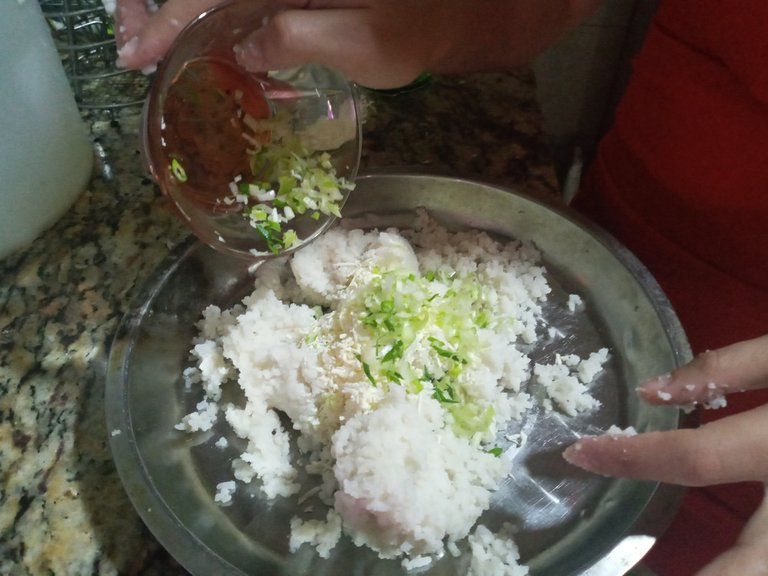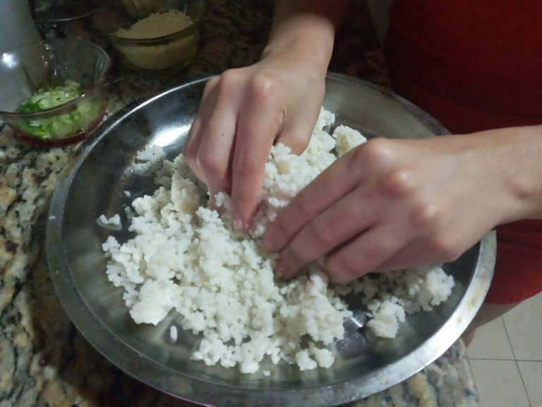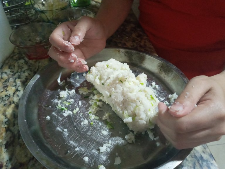 Le añadimos un chorrito de agua y seguimos amasando con las manos hasta compactar.