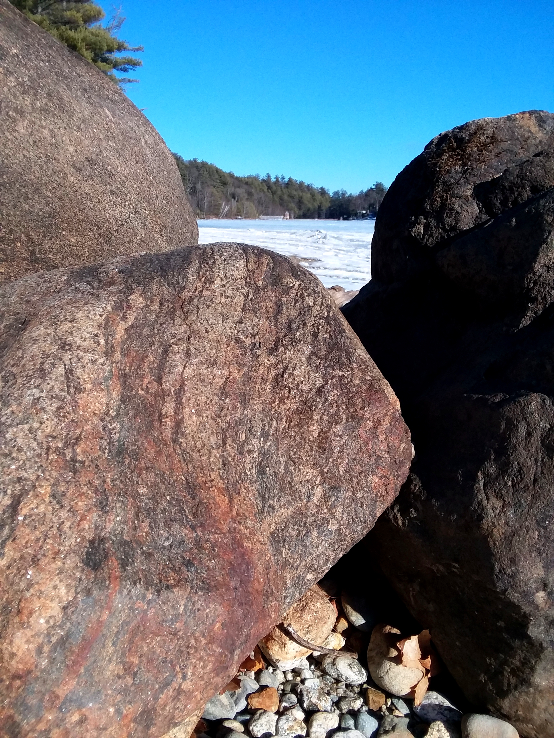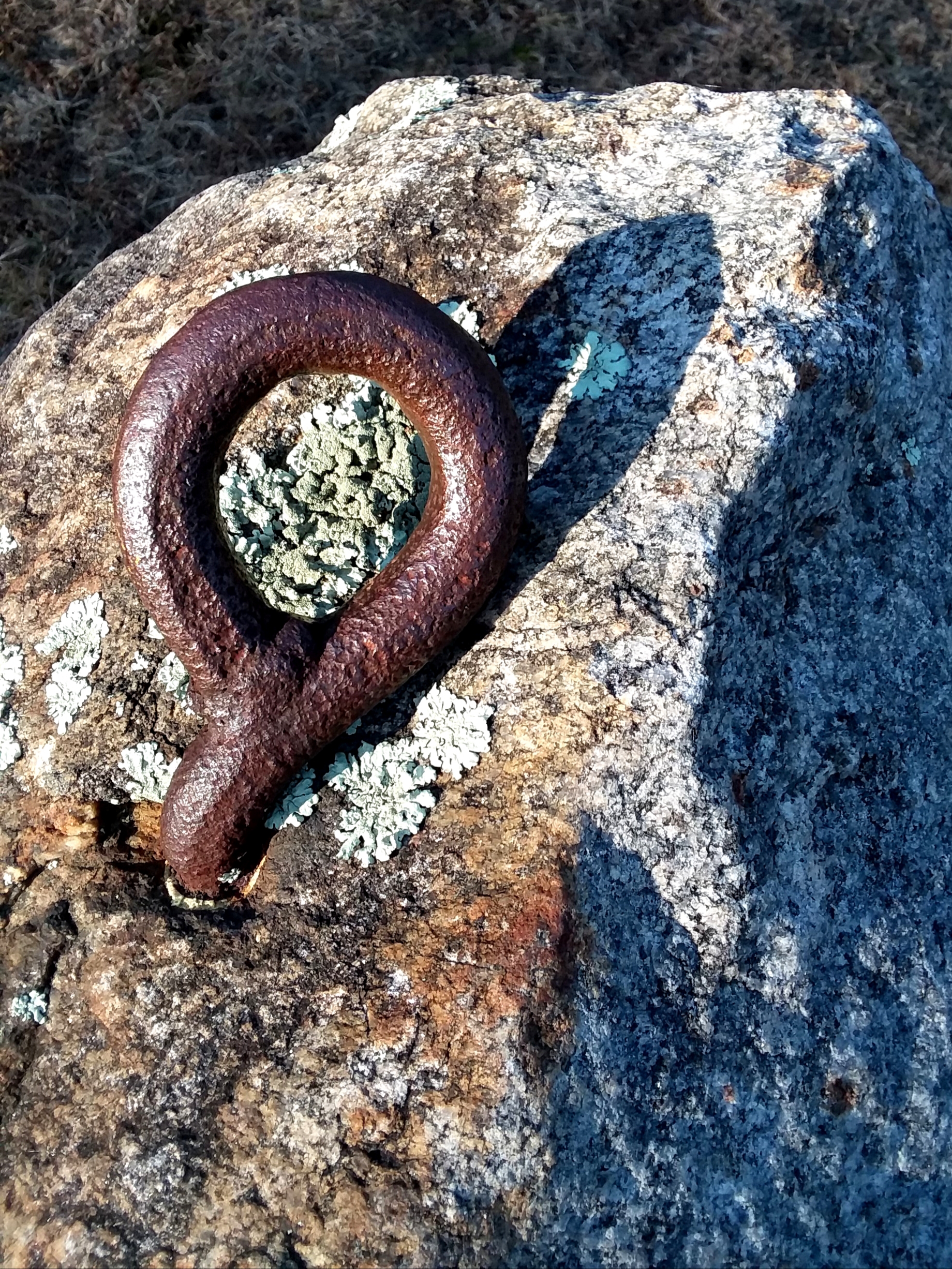 A Steel eye bolt anchored in a large boulder. Pretty amazing.