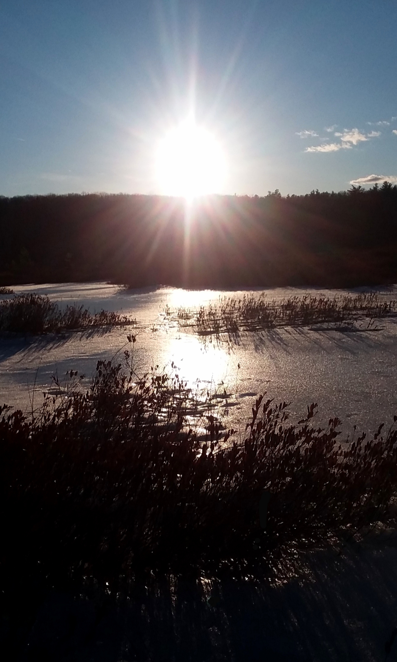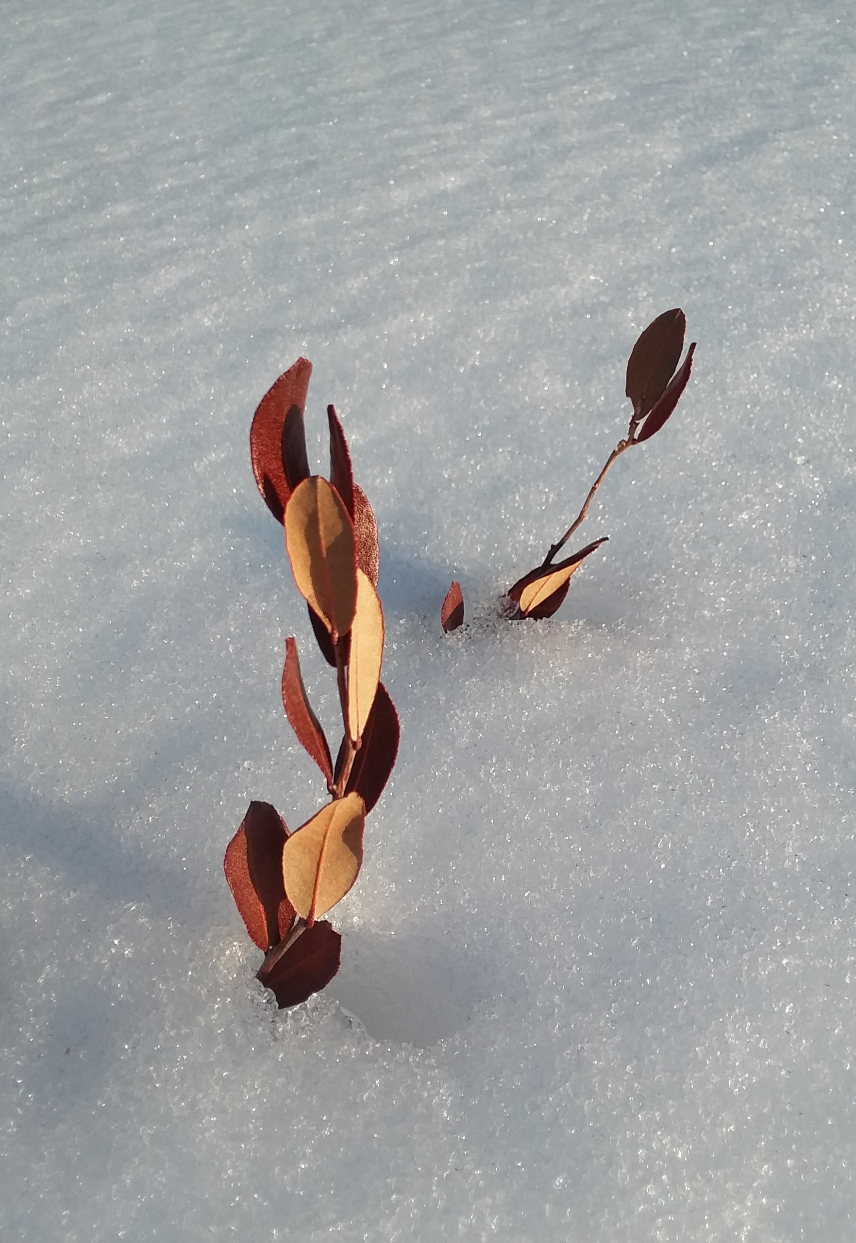 The late afternoon sun reflecting and glistening on the crusty snow.
