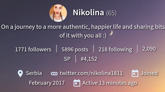 Let's get to know more about @nikolina...