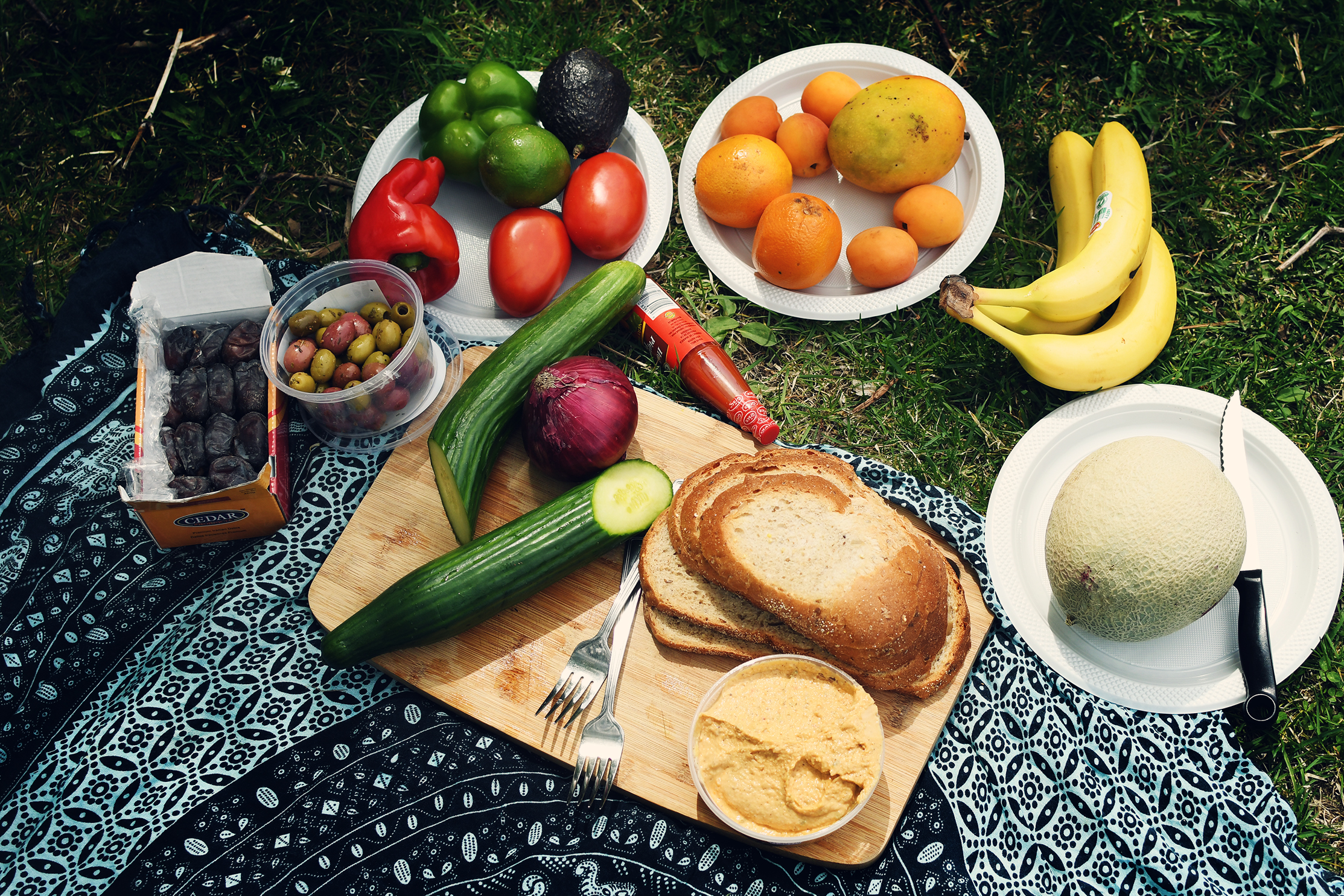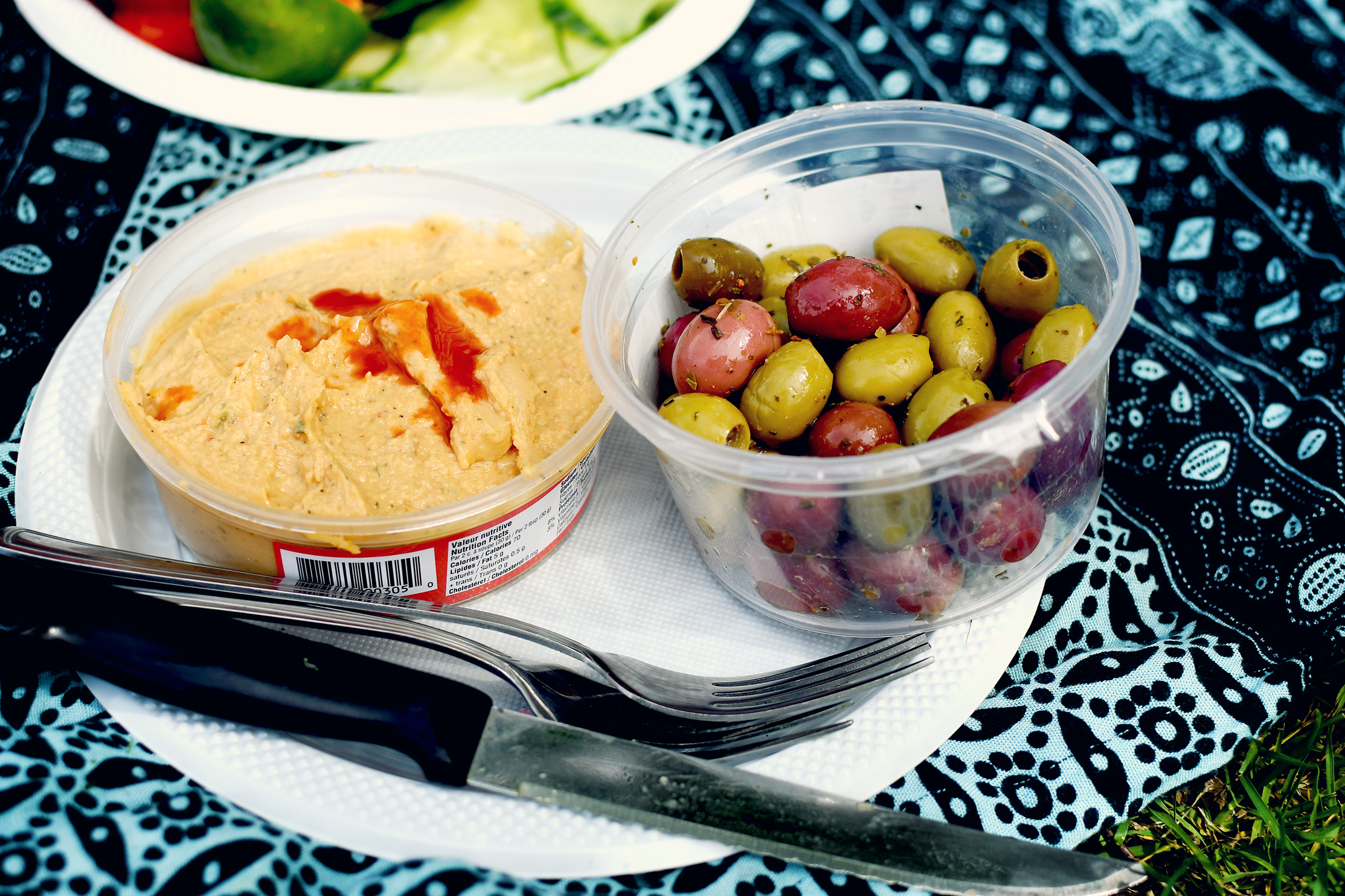 One thing we can always count on in hummus for a picnic. It can be found everywhere, although ideally I would prefer to make my own. Under the circumstances it was impossible.