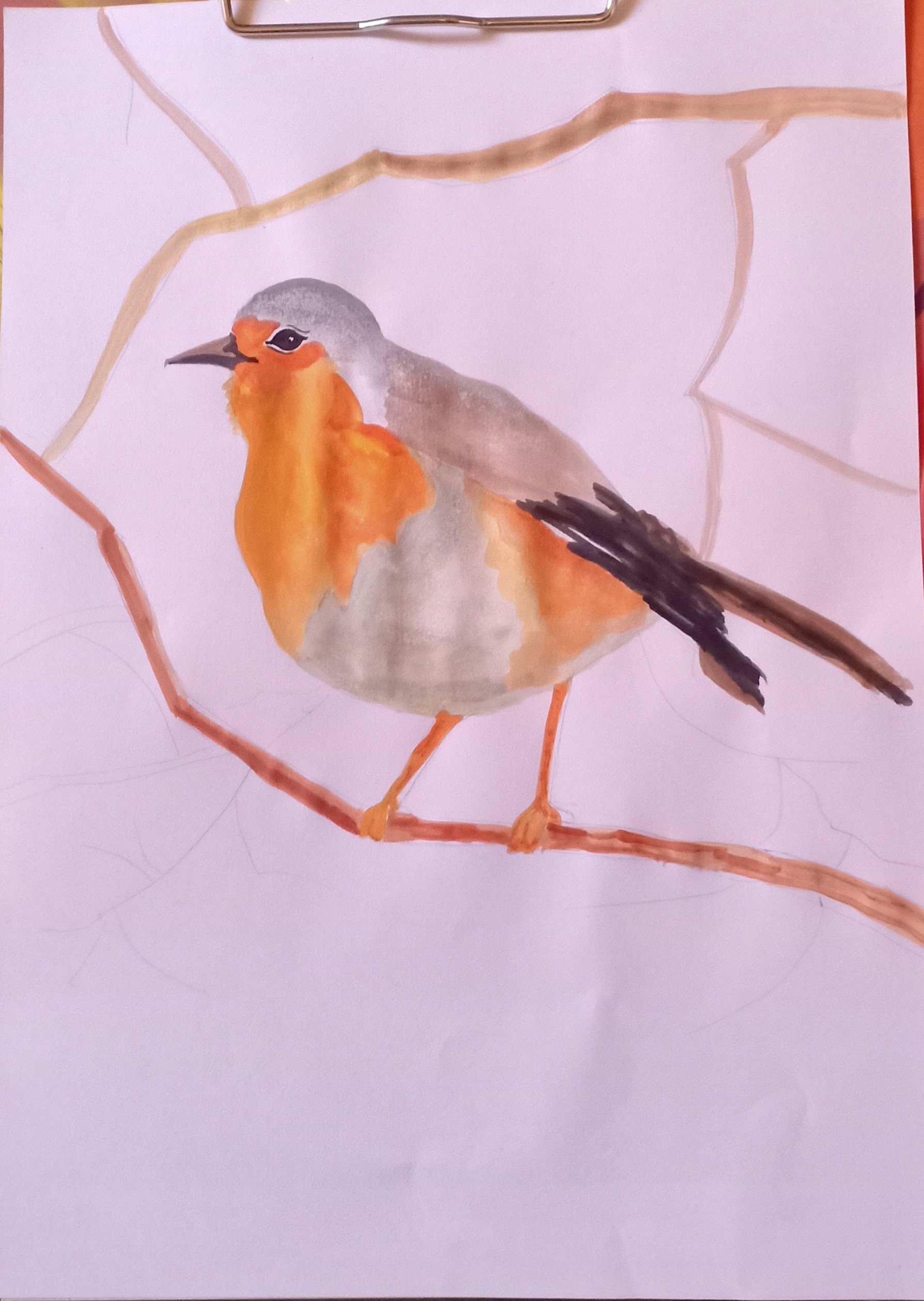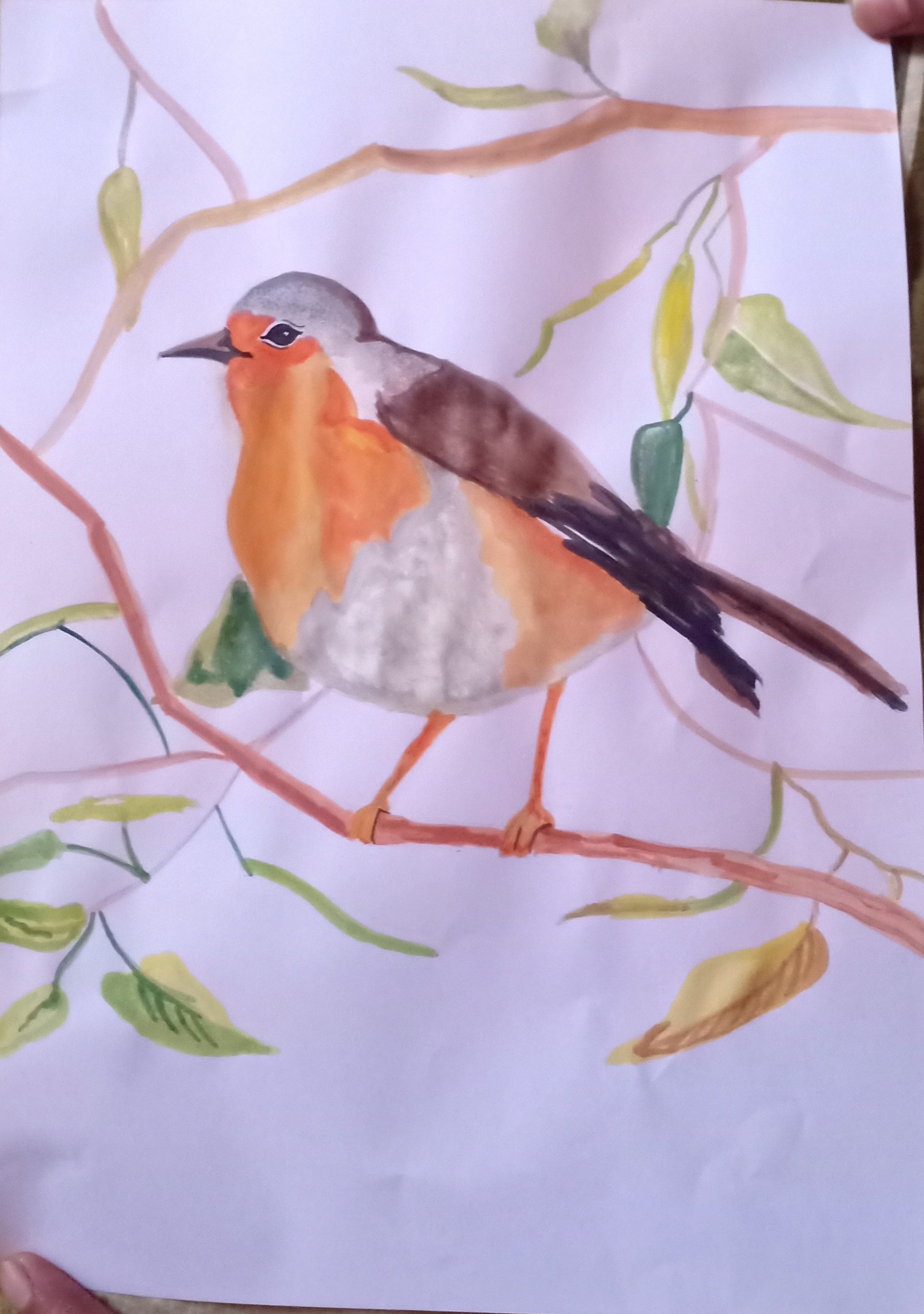 Here is the final one with bird full of color and some branches and leaves of tree as well.