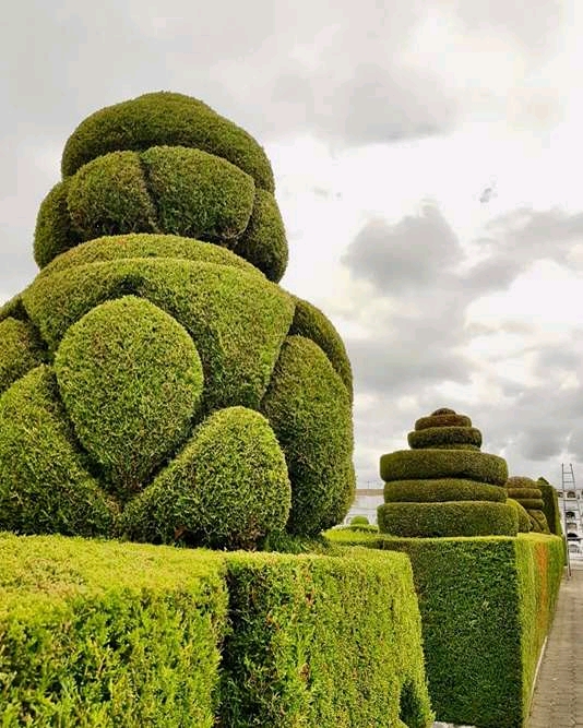 Se puede apreciar figuras referentes a la fauna de las islas Galápagos, ídolos y mascarones de las culturas indígenas del Ecuador, arcos, columnas góticas, entre otras. Me encanto Considero que este paisaje de figuras naturales que abarca 400 arbustos de ciprés son una obras de arte asombrosas.