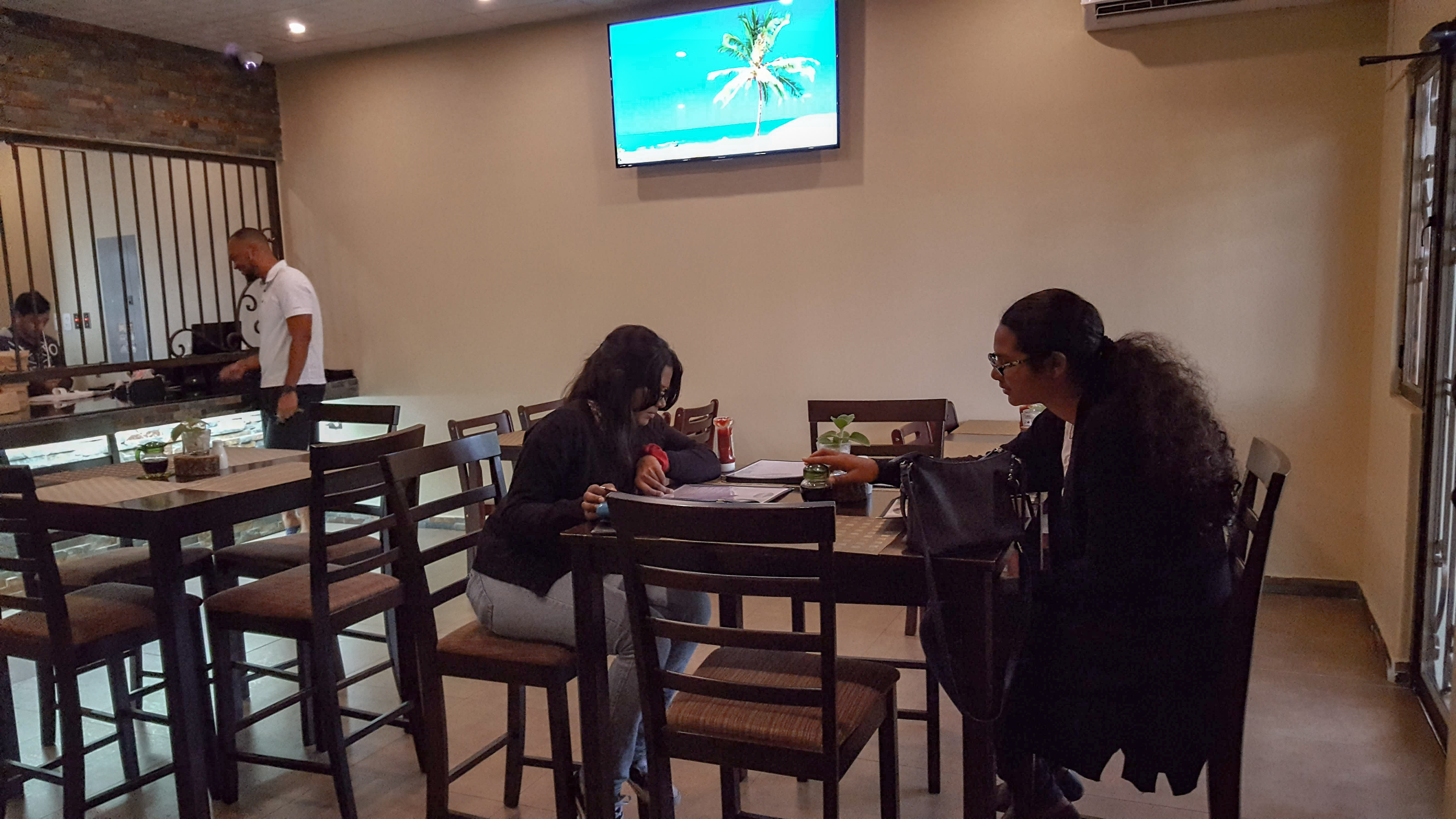 Once inside, the chillout/ lofi music induces that "forget your troubles and relax" feeling. They have both waiting service as well as takeout and we opt for eating in every time. For a bistro, the interior decor seems somewhat bland but we're not concerned about the looks, we're concerned about the food! The tables and chairs are fairly comfortable but could be better. The pictures seem a bit bright but I assure you, it is much darker than it looks and provides a very nice mood.