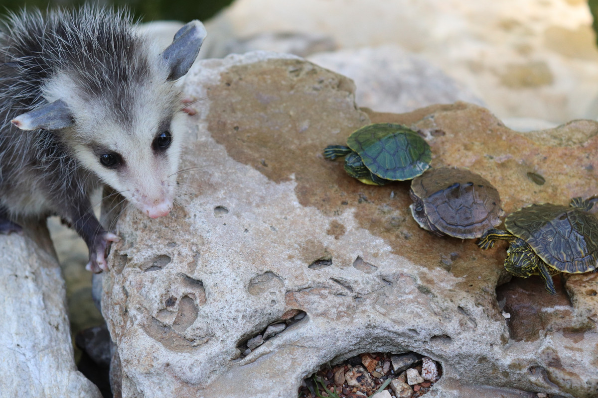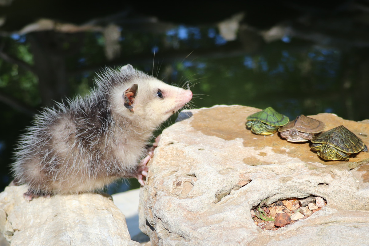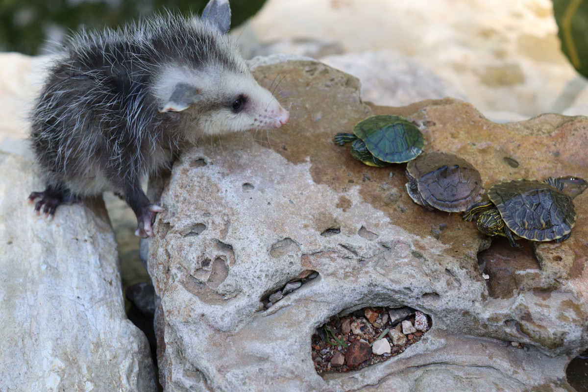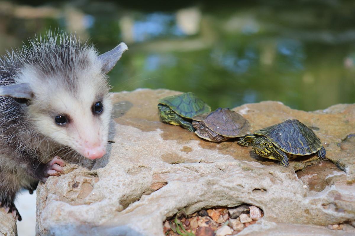 In this scene our opossum meets up with the three turtles. Our eight year old daughter took these photos, and we are trying to figure out which one is best out of these options. Please give them a look and let us know which letter(s) you like best. Thanks in advance for the help!