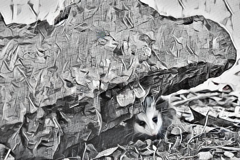 Still trying to sort through various options to use in an upcoming children's book that Red-Pepper and I are working on. We might even try to finish it this year, but we need your help. We shot multiple options for each scene, and need some help picking the best option(s). Check out the edited versions of the photos that Red-Pepper took of this little opossum joey peeking out from under a rock, and see which one is your favorite. Thanks!