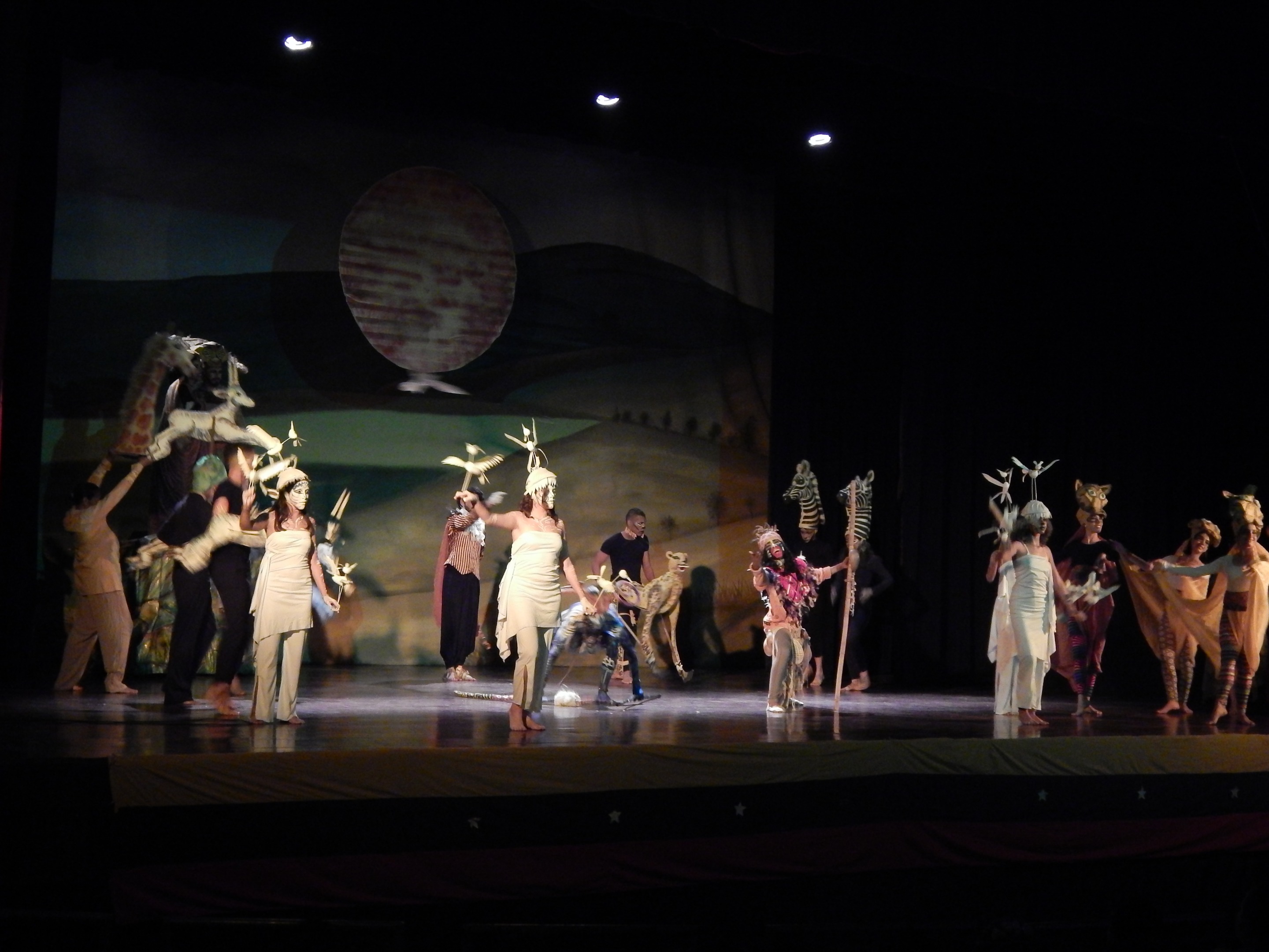 El aforo del teatro estaba lleno. La obra la presentaron en diciembre del año 2018. El tema del musical era la película El Rey León. El elenco de la obra eran actores profesionales de teatro, bailarinas de ballet, jóvenes actores y extras.