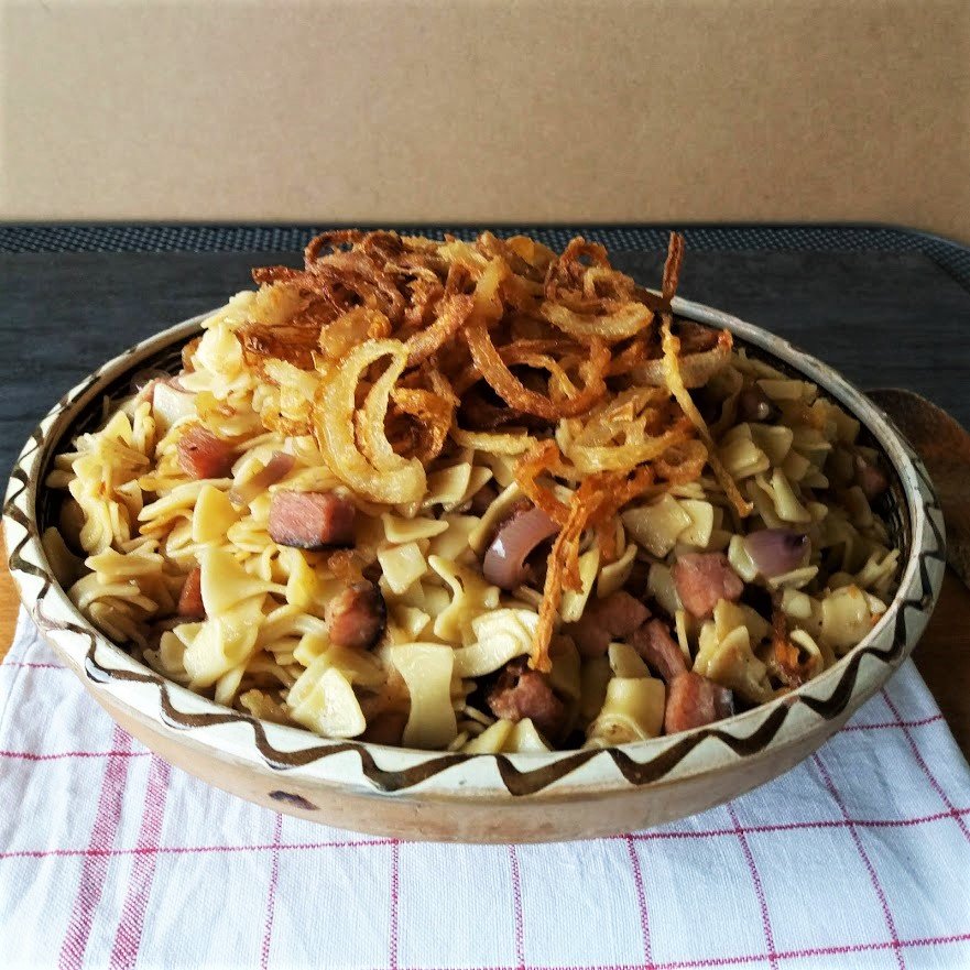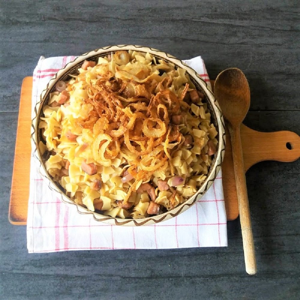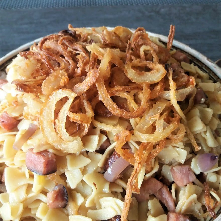 Schinkenfleckerl With Crispy Onion Rings