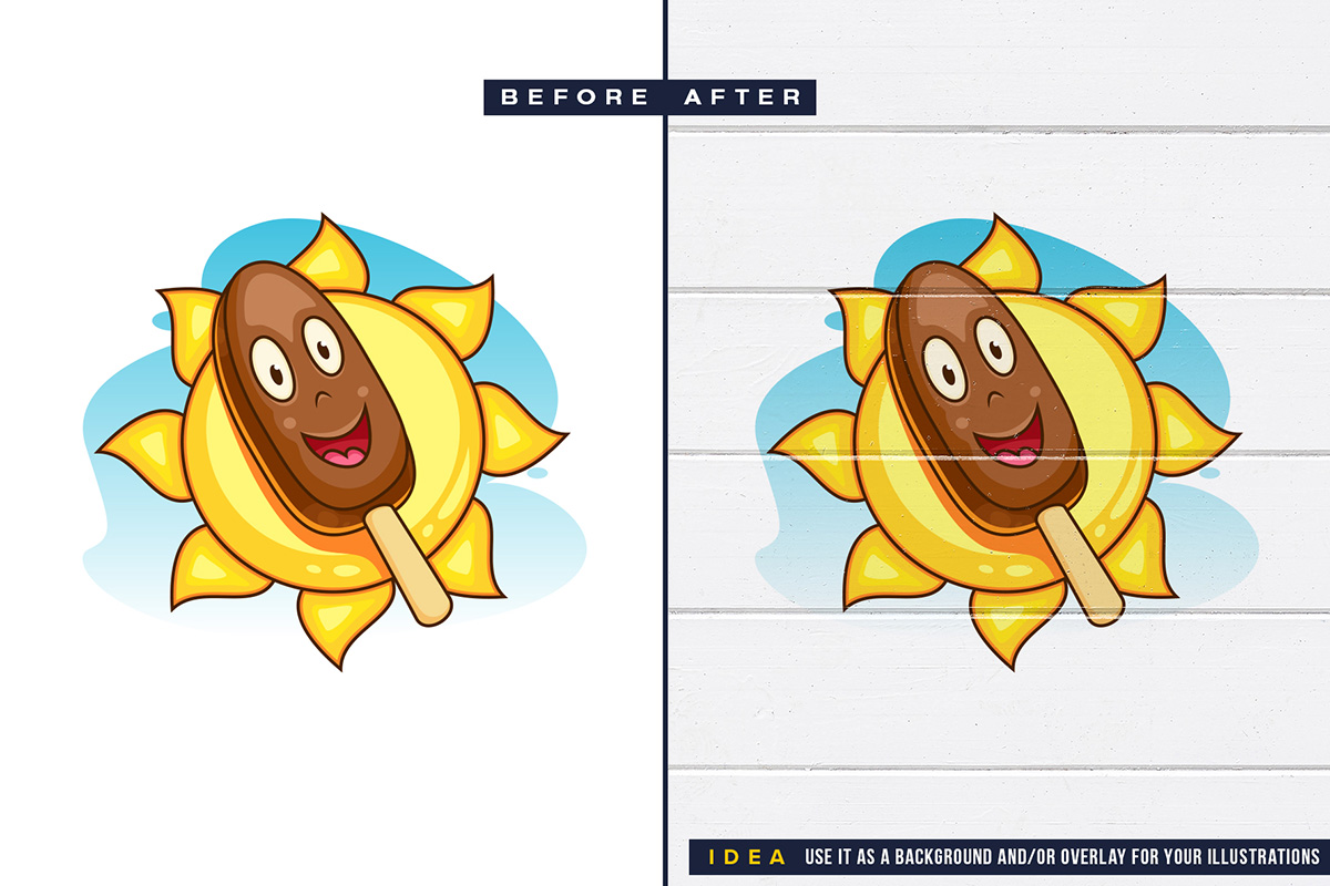 I think it looks ok so I decided to put them on sale on different markets. I created all presentations in Photoshop, the objects are also photos taken by me and cut out from background. Illustration done in Illustrator like that tiki head logo, the sun with icecream. And also a quick 3D render for cubes in Keyshot.