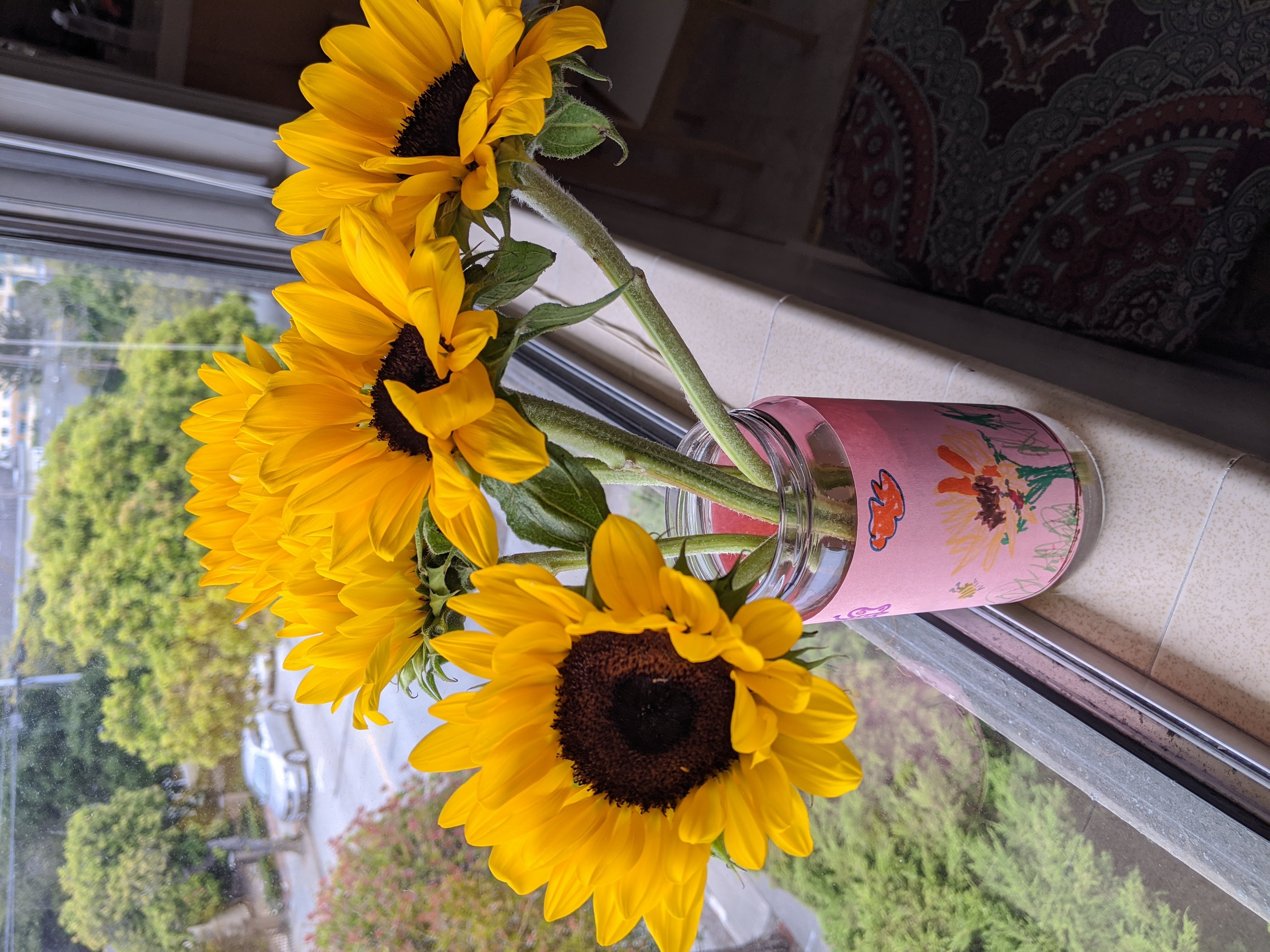 I am new to Steemit and looking for people to follow and engage with. I enjoyed reading a little about your life, your successes on Steemit, your hopes, and your positivity for life. This week I bought some sunflowers to put in my window. My daughter drew a picture for the vase. Flowers do indeed brighten up the room and seem to give off peace and happiness, even on a foggy day like it is here in California.