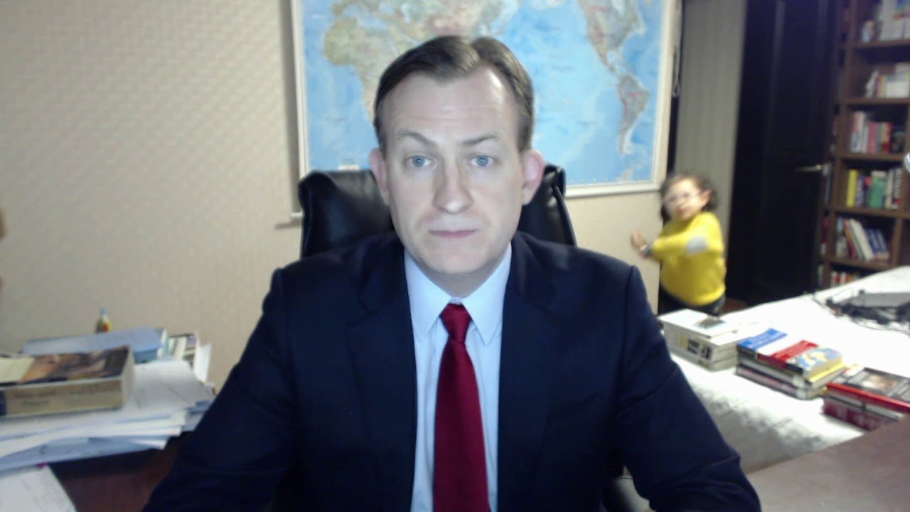 Yes, your children or animals may enter the room. Don't hide them. You will anyway look distracted, so use their presence as an ice-breaker. But don't forget about common sense and limit their presence: we don't want to steal anybody's time.