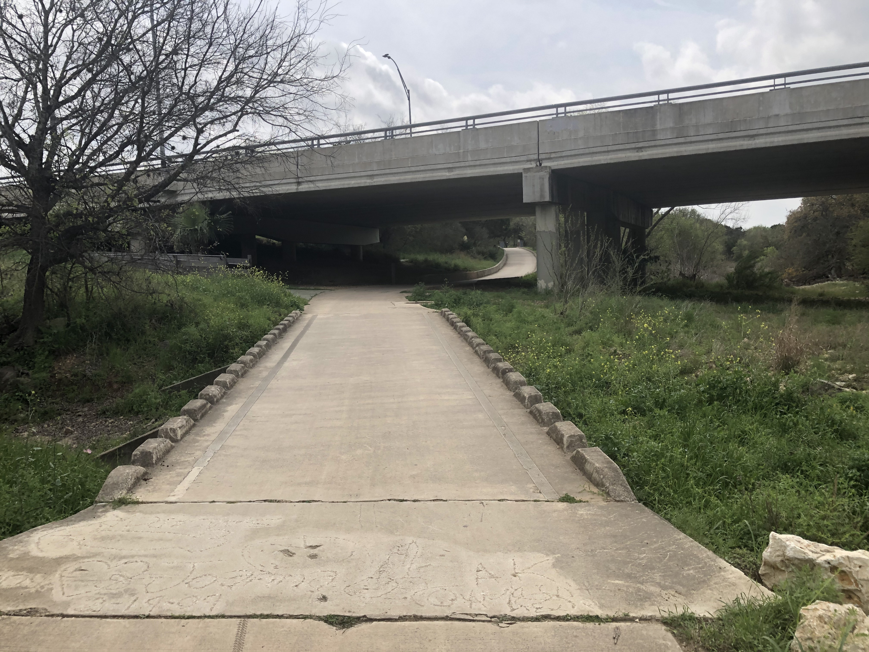 Below, the greenway path meanders underneath a busy over pass which is pretty cool !