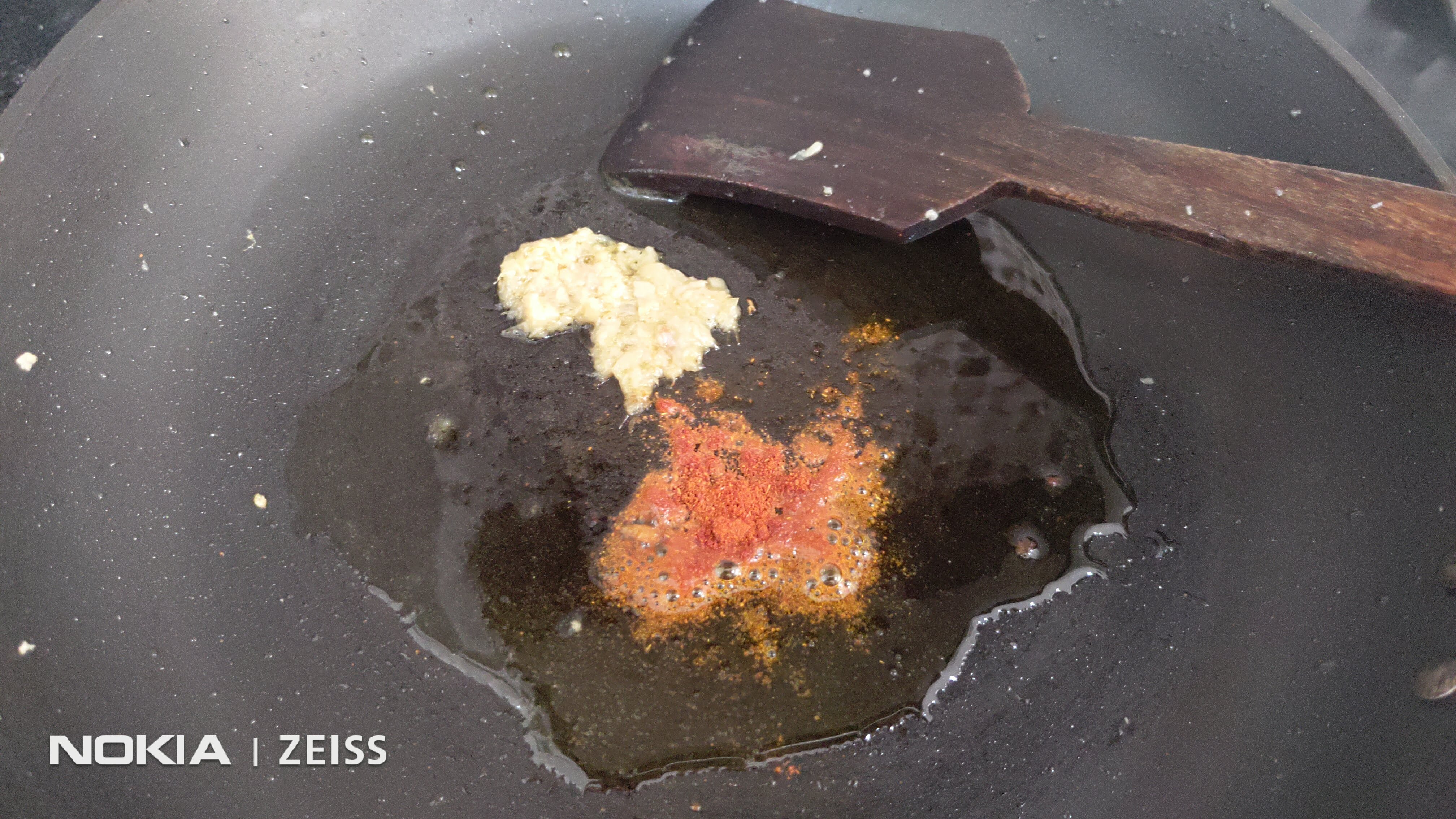 Add the red chilli powder and grated ginger or paste.