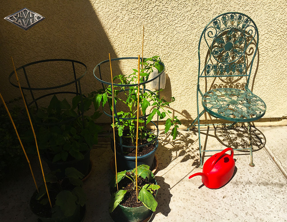 Upon reaching home, I checked on the potted vegetables in my backyard. I have a pot of tomato, green beans, and two eggplants.