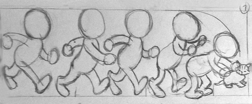 There are two different methods of animation: The linear or straight-ahead (1), referred to drawing a movement after the other on an incremental sequence. Pose planning (2) is the one that sets when drawing key poses or extremes, to later fill the action with drawings in between.
