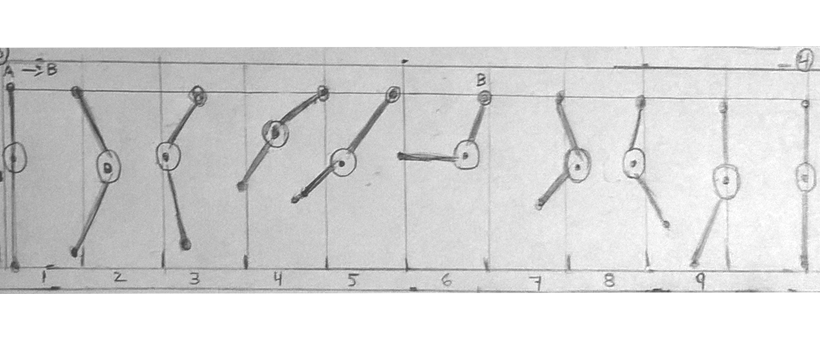 The characters move in routes of action that either curve or go straight. If a drawing is set on an action that doesn't fit the route or spacing plan, a jitter or an unrealistic action will occur.