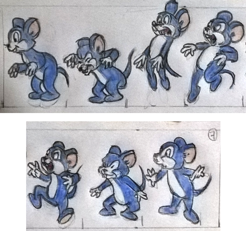 In the mouse scene (7), the mouse sinks into a crouch anticipation position or contraction which is always short so it can immediately shoot into the stretch position (also brief) and then in a fast movement goes back to it's regular appearance.
