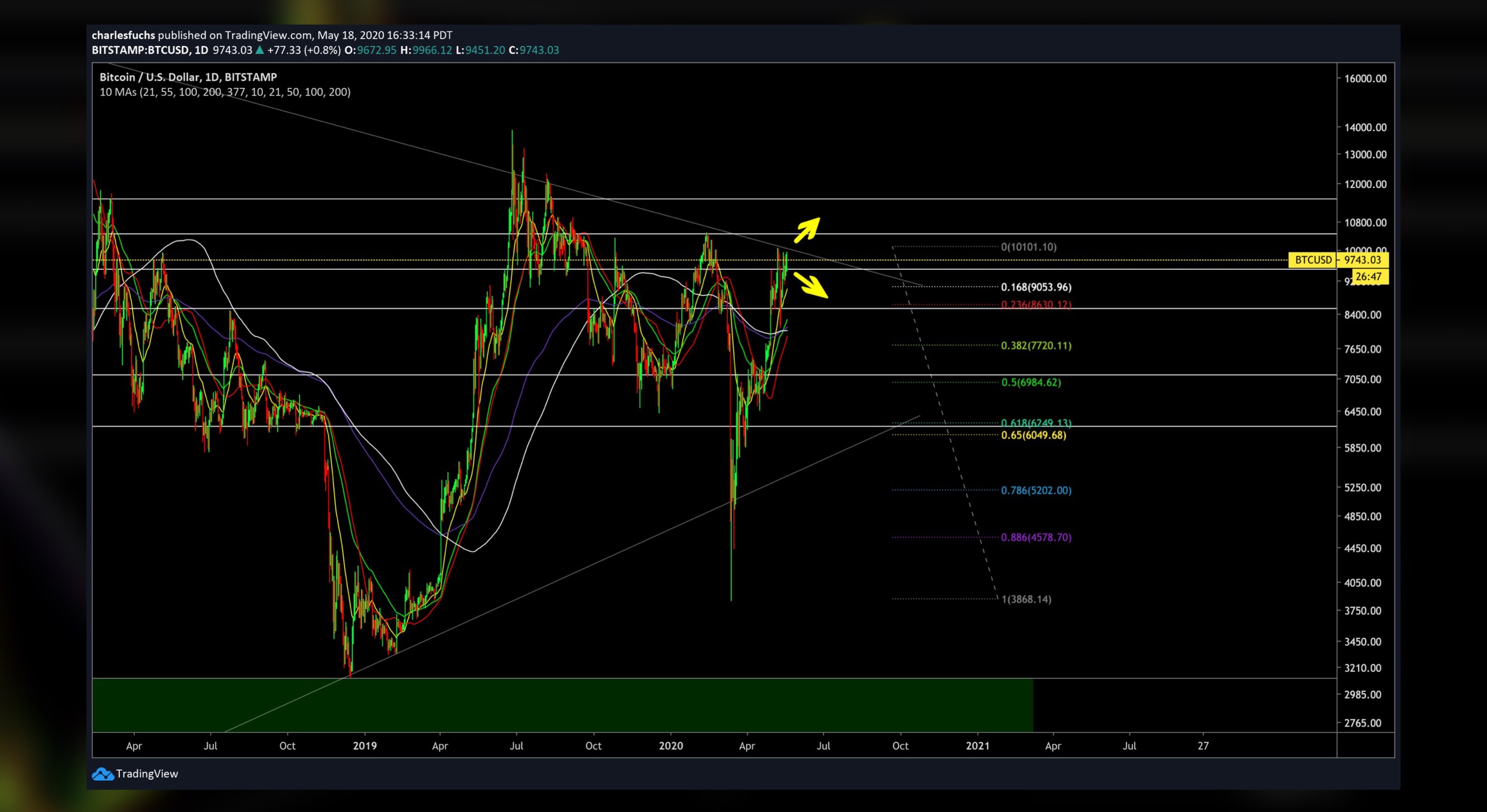 As of writing this post, The bitcoin price is around $9,700 and it's been poking its head at a very long 2+ year bearish trend line. We are in a critical point right now in where the Bulls or the Bears can take this market to where it wants.