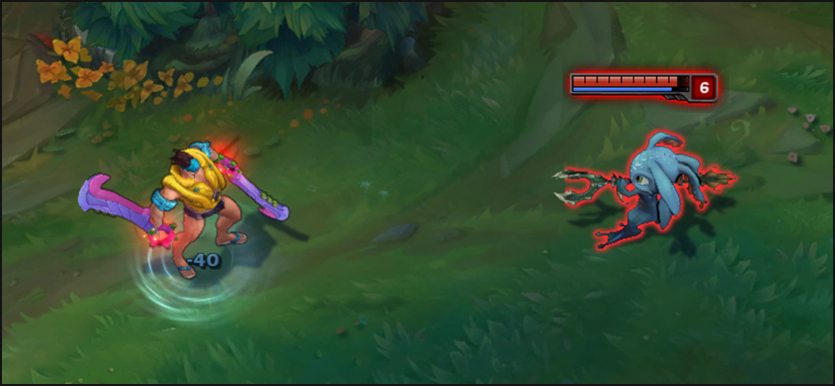 When Draven catches a Spinning Axe Spinning Axe, kills a non-champion or destroys a turret, he gains a stack of Adoration. In addition, Draven generates 2 bonus Adoration stacks if he kills 6 non-champions in a row without dropping an Spinning Axe axe.