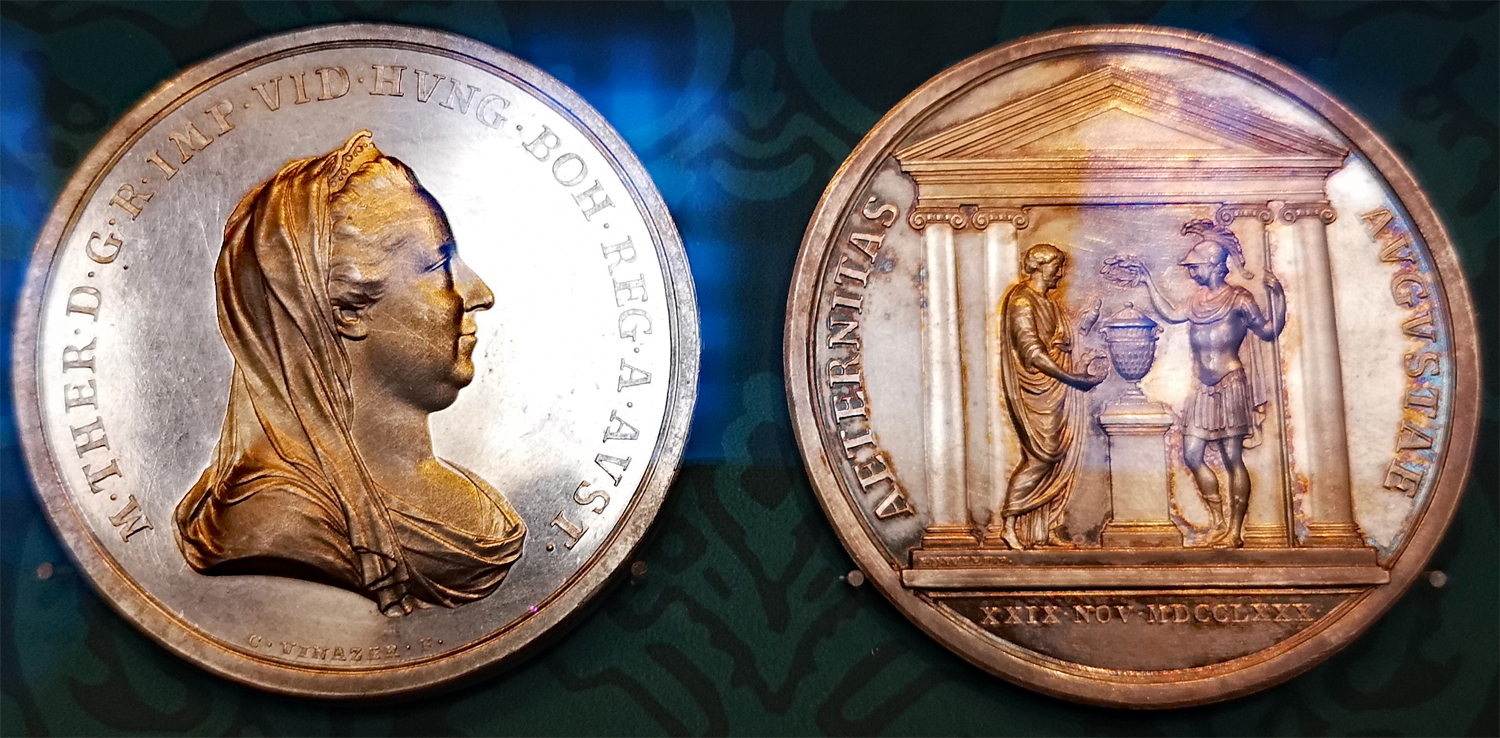 The portrait of Empress Maria Theresa (1717-1780) was minted millions of times on medals. Occasions were either private (births, weddings, coronations, deaths) or political events. Through the spread of medals it was also possible for the common people to participate indirectly in courtly events.