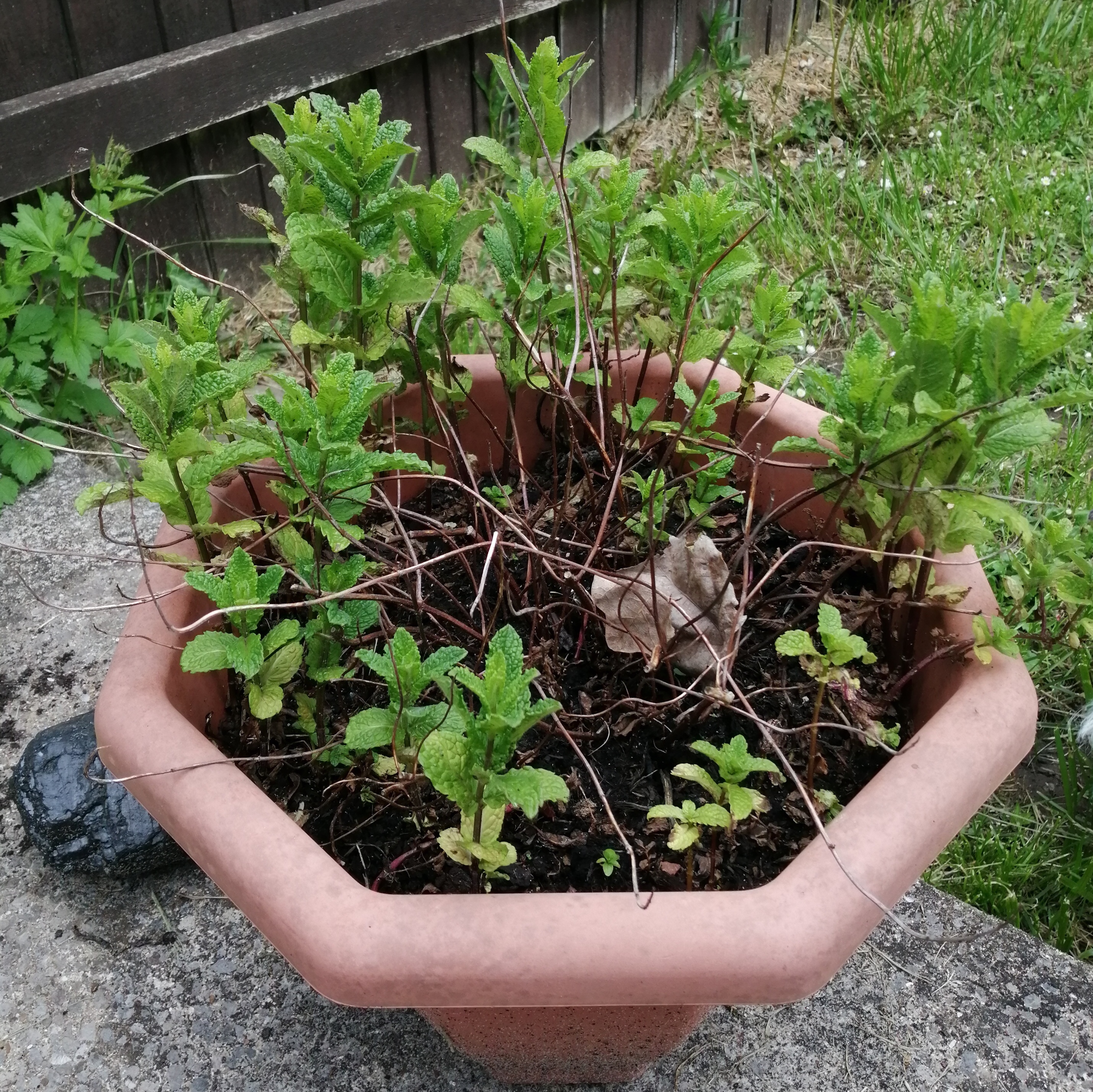 I've neglected my mint this year, by allowing last year's stems to fill up the pot. Mint is also a fantastic herb to grow as its almost impossible to kill off, so always grow in pots because if this things gets a foothold in your garden, in can spread uncontrollably if not monitored closely.